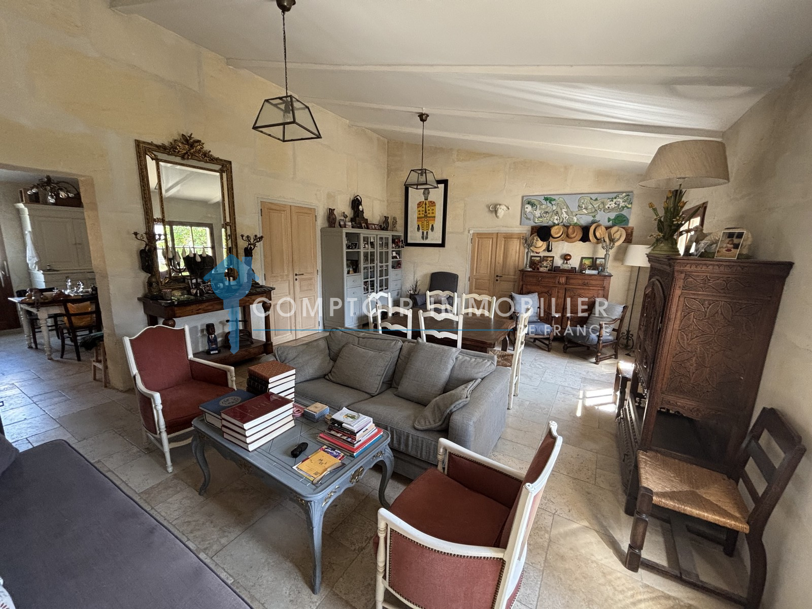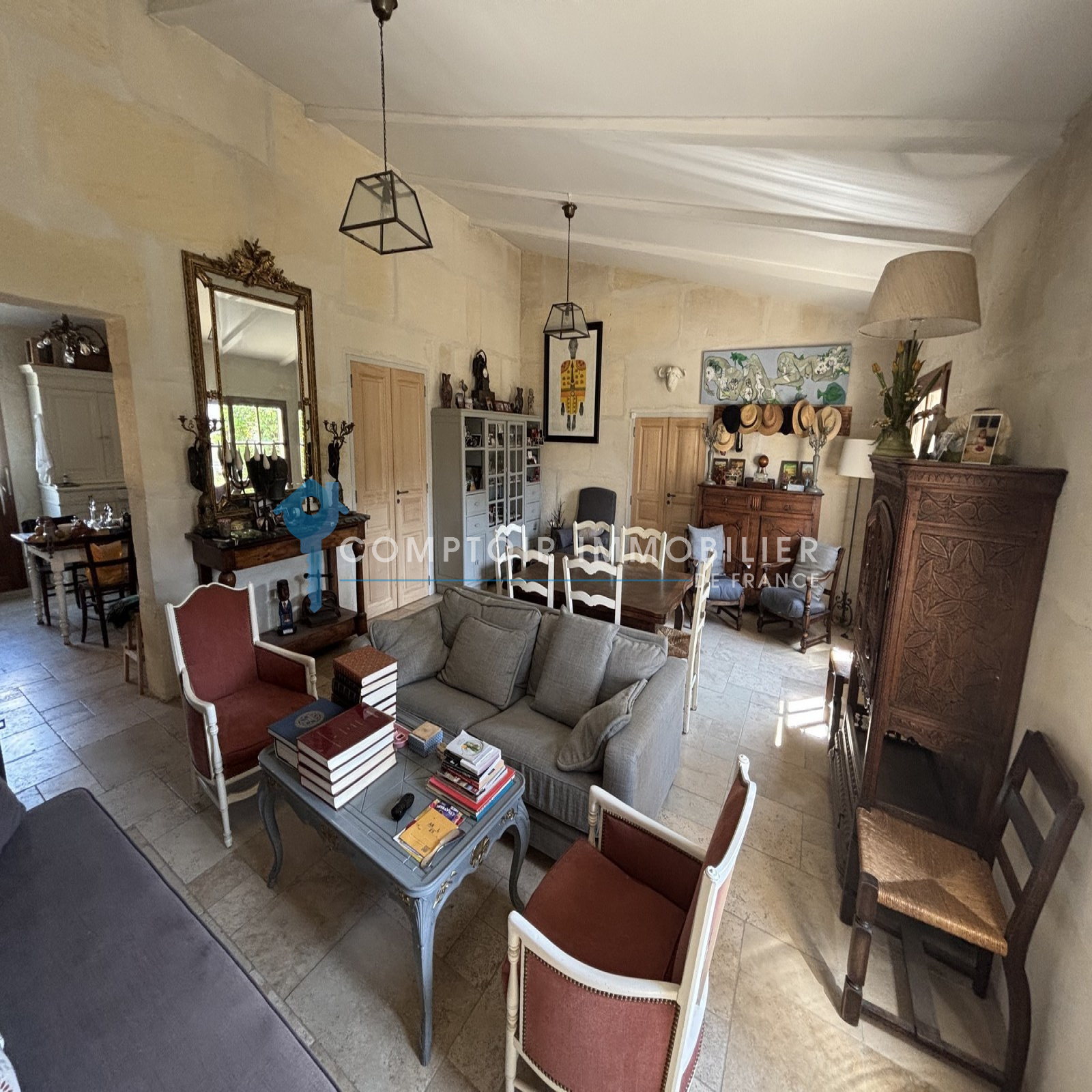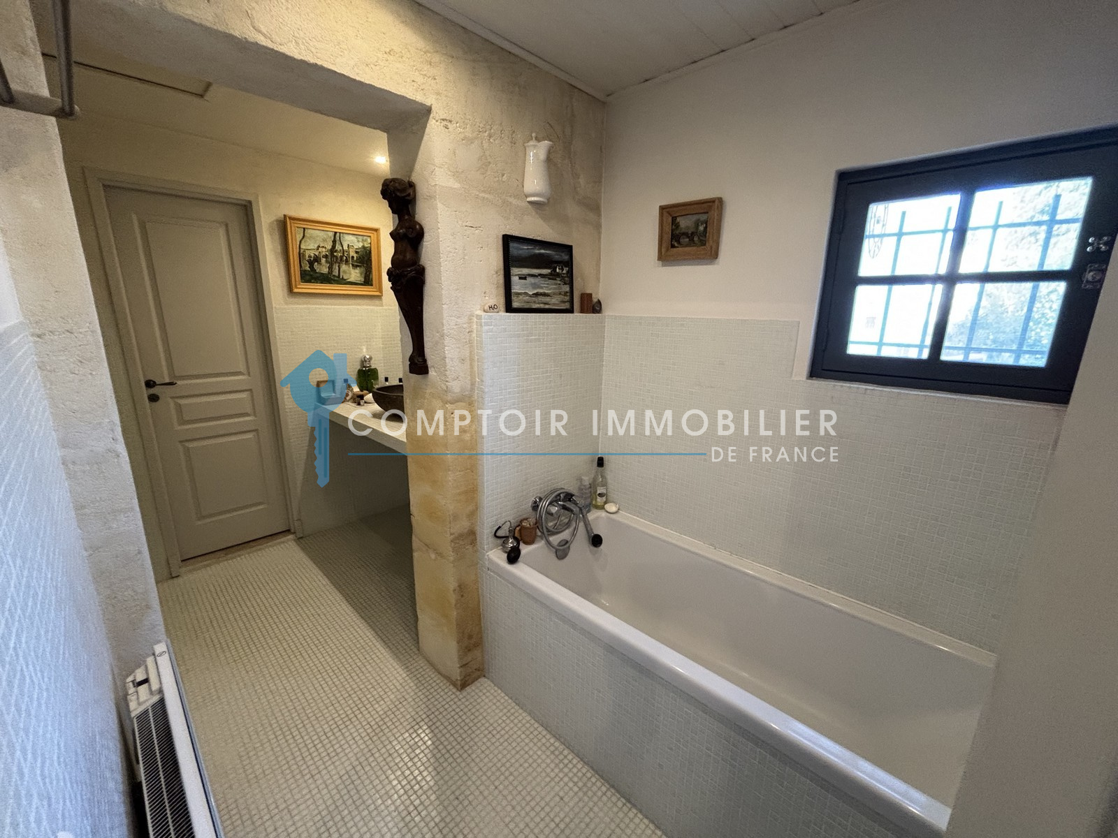 UZES PONT DU GARD : Cette maison de charme a été édifiée à partir de la très belle pierre issue des carrières du village de Castillon du Gard. Elle propose une surface habitable d'environ 90 m2 comprenant une pièce de vie chaleureuse et lumineuse, avec accès au jardin, équipée d'un poêle à pellets pour une ambiance chaleureuse, 2 chambres, 1 salle de bains spacieuse avec baignoire + douche, 1 buanderie, 1 atelier attenant pouvant être transformé en espace nuit et doter la maison de 3 chambres de plain pied, 1 wc indépendant. Elle est agrémentée d'un jardin fleuri de 400 m2 avec un petit bassin. Un atelier au fond du jardin. Exposée plein SUD. Possibilité intéressante amélioration isolation avec ECO PRÊT A TAUX ZERO. A 5 minutes de l'autoroute A9 permettant de rejoindre Nîmes en 20 minutes, Montpellier et son aéroport en 40 minutes, la métropole de Marseille en 1h15 et la mer en 50 minutes, à 20 minutes d'Avignon et 15 minutes d'Uzès, toute proche du Pont du Gard et du Parc naturel des Gorges du Gardon (Baignade, Canöe, randonnée), cette maison peut constituer aussi bien un lieu de vie privilégié et un potentiel locatif saisonnier idéal.