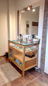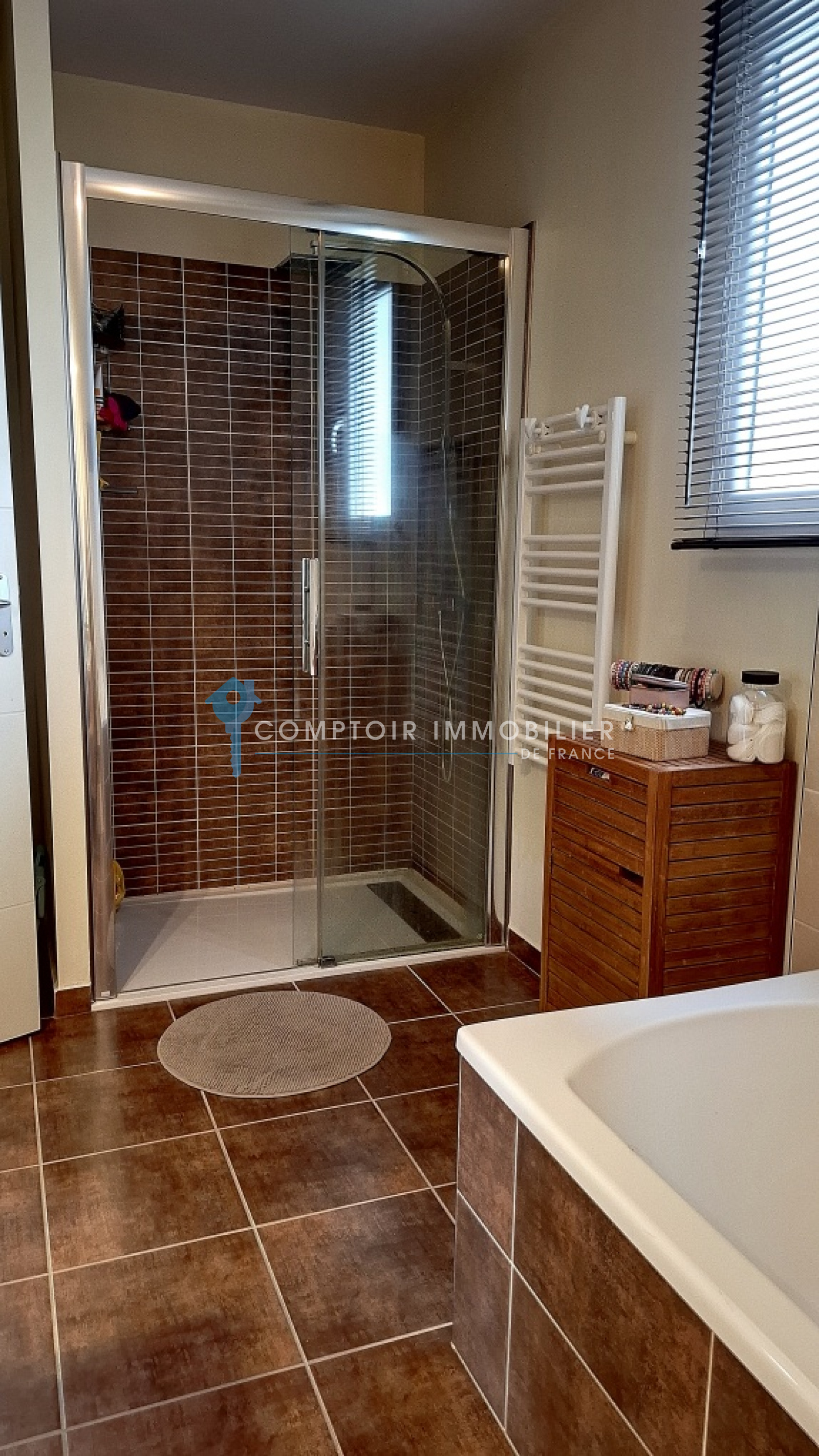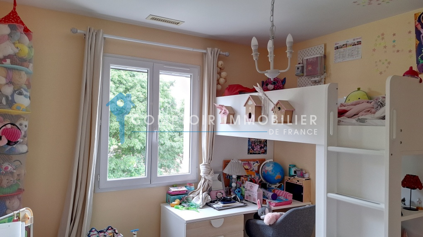 À l'étage, trois chambres avec placards, une salle de bain avec baignoire et douche à l'italienne afin de faciliter l'organisation familiale et un wc.
