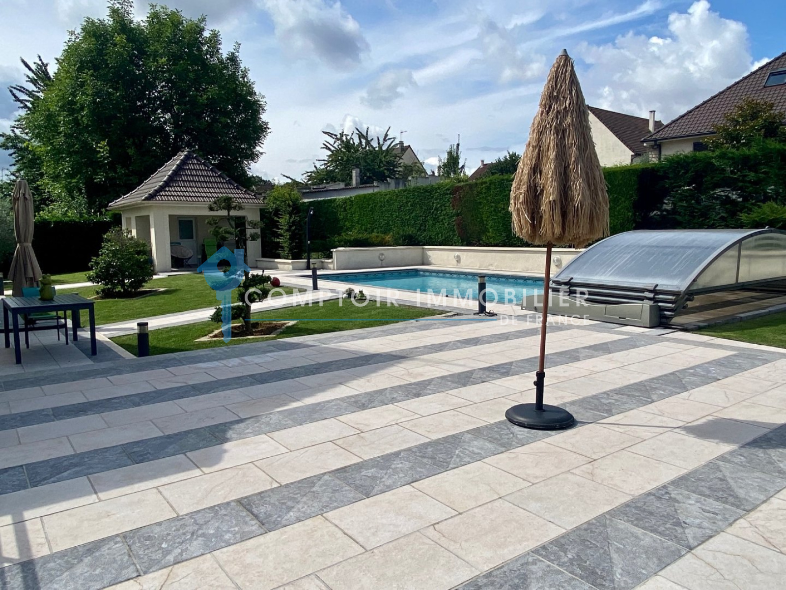 Dept (91) Essonne - A Vendre à Villabé - MAGNIFIQUE MAISON SUR TERRAIN 1800 M². Dans un cadre privilégié, cette maison de 215 m² édifiée sur sous-sol total vous séduira par la qualité de ses prestations, son jardin paysagé et sa piscine chauffée . Elle comprend au rdc une entrée cathédrale, une belle cuisine équipée et ouverte sur un séjour plein sud, une suite parentale (grande chambre avec sa salle de bain), 2 autres chambres, une salle d'eau avec douche italienne, un wc suspendu. A l'étage: une mezzanine de 15 m², une suite parentale de 55 m² (chambre avec sa salle d'eau et son dressing), une chambre, un wc suspendu. Sous-sol de 122 m² divisé en un garage double carrelé, une cuisine d'été, 2 celliers et une grande pièce de 32 m². Un double garage est attenant à la maison (47 m²). Chauffage au gaz (chaudière 1 an), fenêtres PVC, portail et portes de garages automatisés, clim à l'étage.... maison sans travaux à la décoration soignée! Petite dépendance dans le jardin. Terrasse de 50 m² avec belle vue sur la verdure! Rare sur le secteur. Honoraires charge vendeur COMPTOIR IMMOBILIER DE FRANCE - Estelle PELLETIER conseillère à Villabé - 06 22 92 06 57 - Plus d'informations sur www.cif-immo.com (réf. 13638) -- Informations CORONAVIRUS : Nos visites s'effectueront avec la mise en place d'un protocole sanitaire, notamment avec le port d'un masque et dans le respect des gestes barrières, afin d'assurer la protection de tous. --