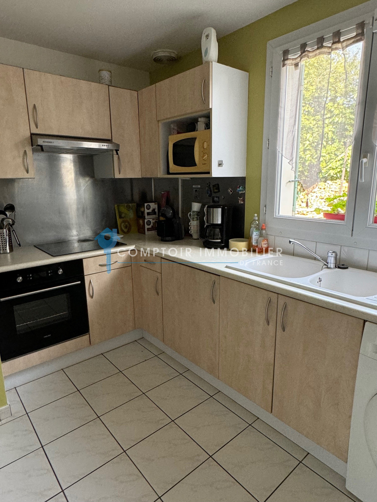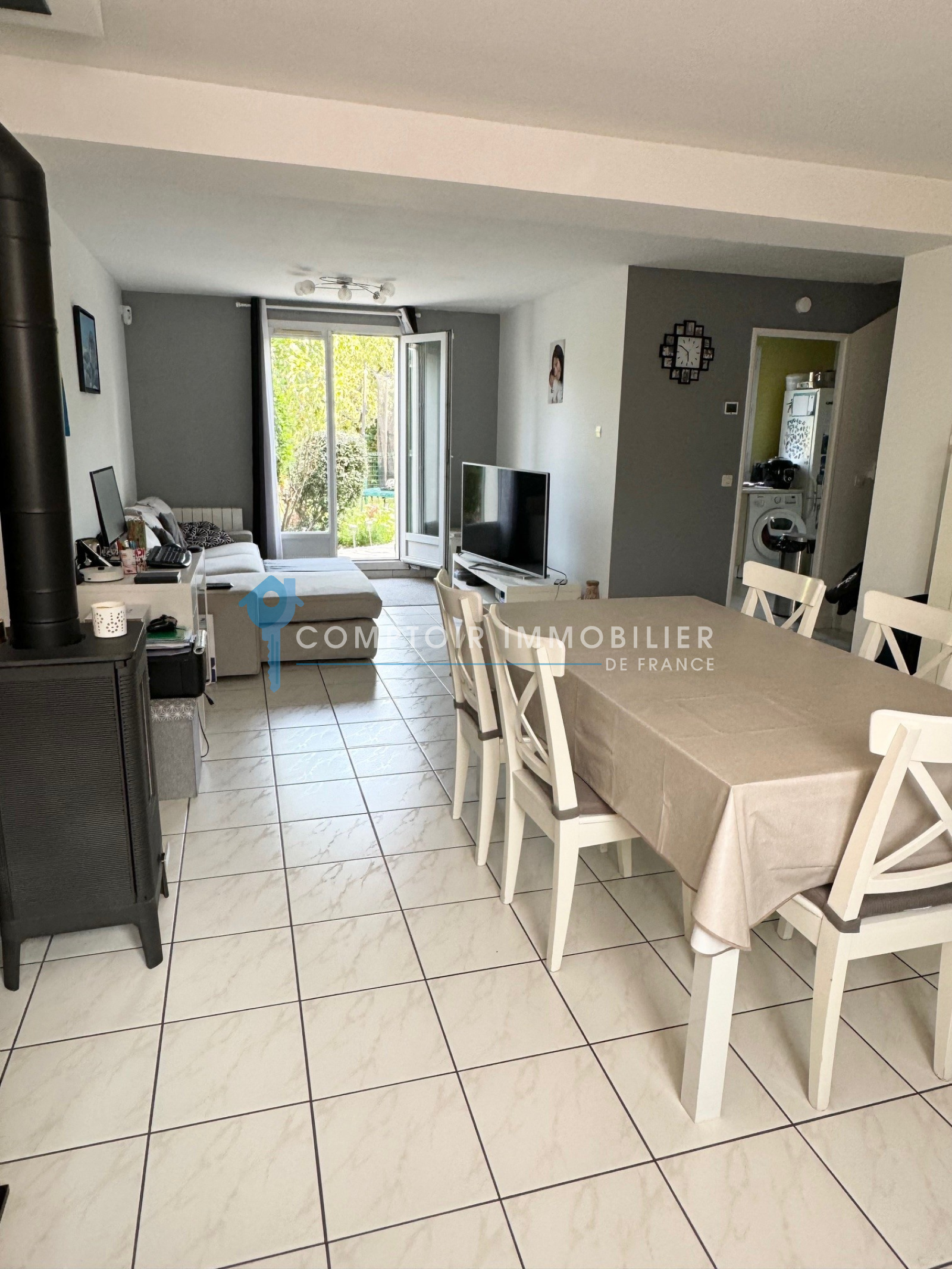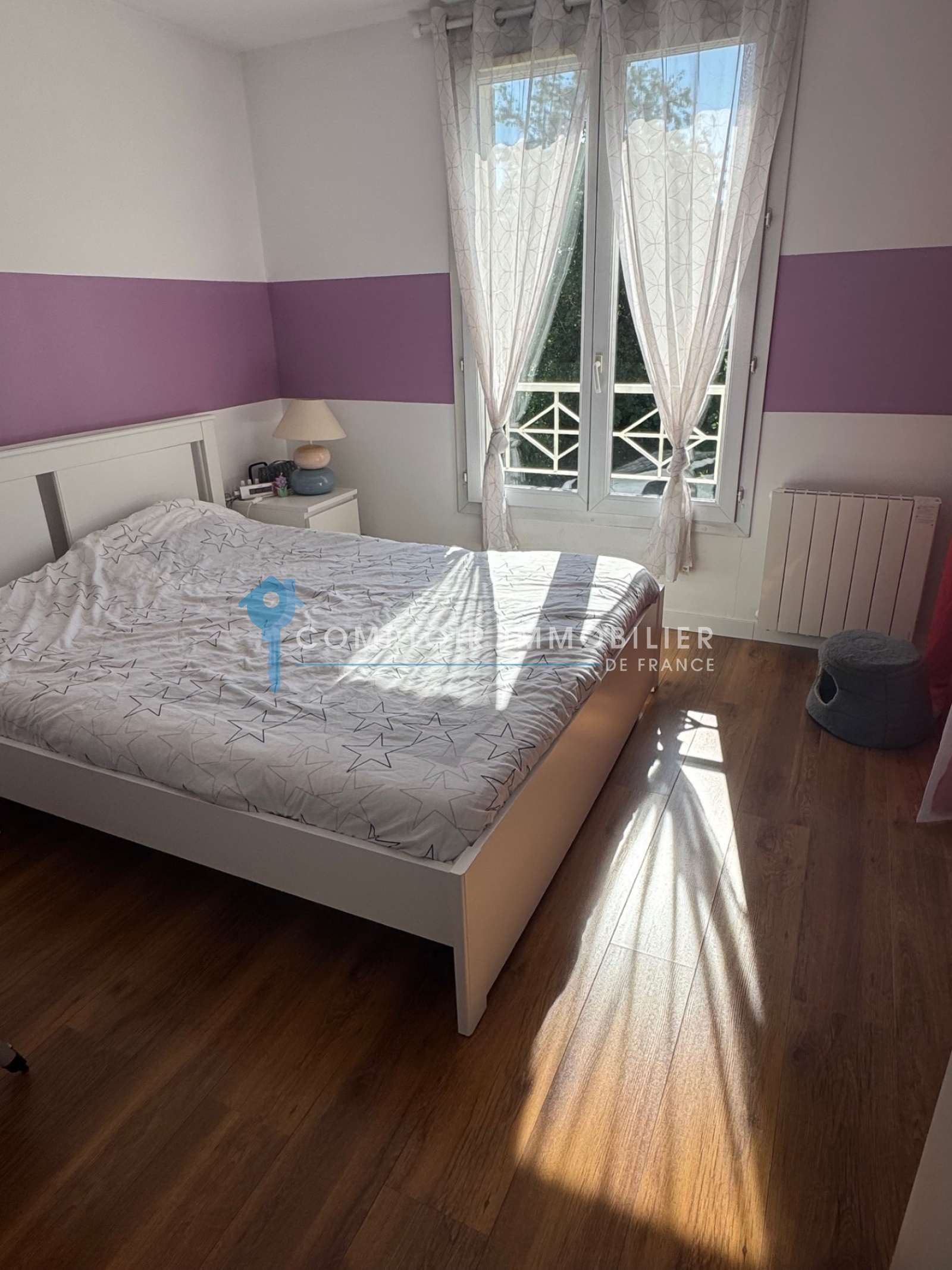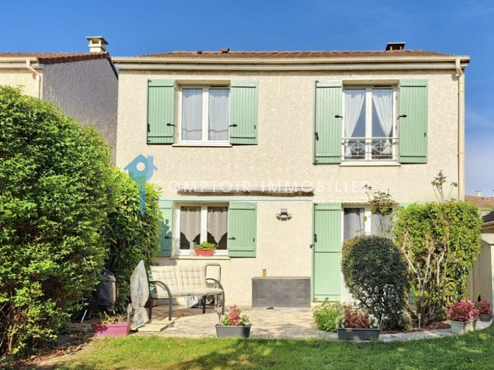 Dept (91) Essonne - A Vendre à Villabé - AGREABLE PAVILLON INDIVIDUEL EN IMPASSE - Idéalement situé dans un environnement calme et résidentiel, ce pavillon de 93 m² se compose au rdc d'un beau séjour lumineux équipé d'un poêle à bois, une cuisine séparée (possibilité de l'ouvrir sur le séjour), un wc. A l'étage: 4 chambres, une salle de bain, un wc séparé, des rangements. Un garage complète ce bien avec en plus 2 places de parking extérieur. Fenêtres PVC. Terrain de 380 m² avec un jardin arboré et sans aucun vis à vis! Gare RER et écoles à proximité!