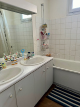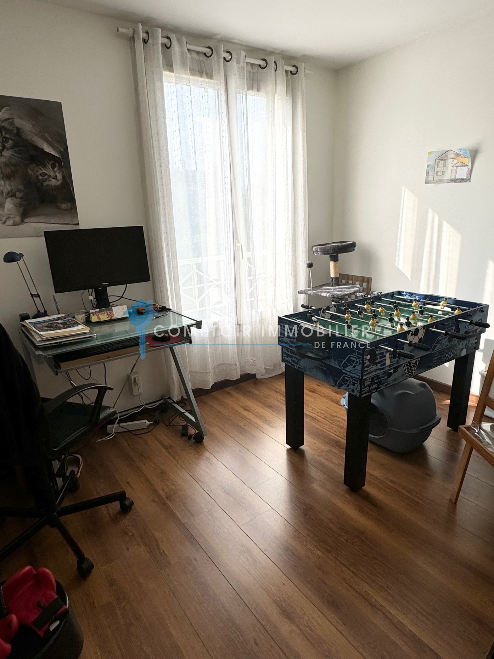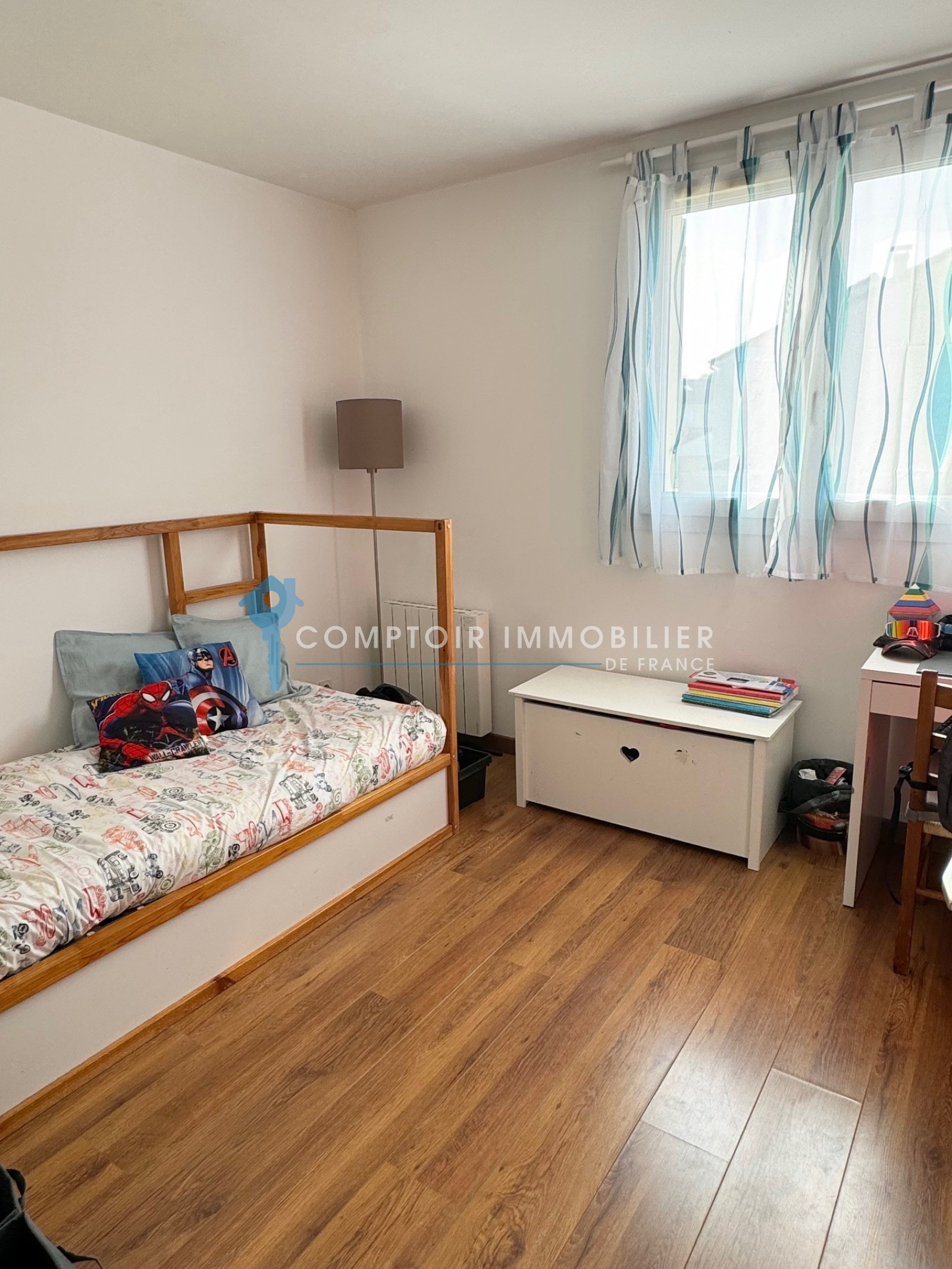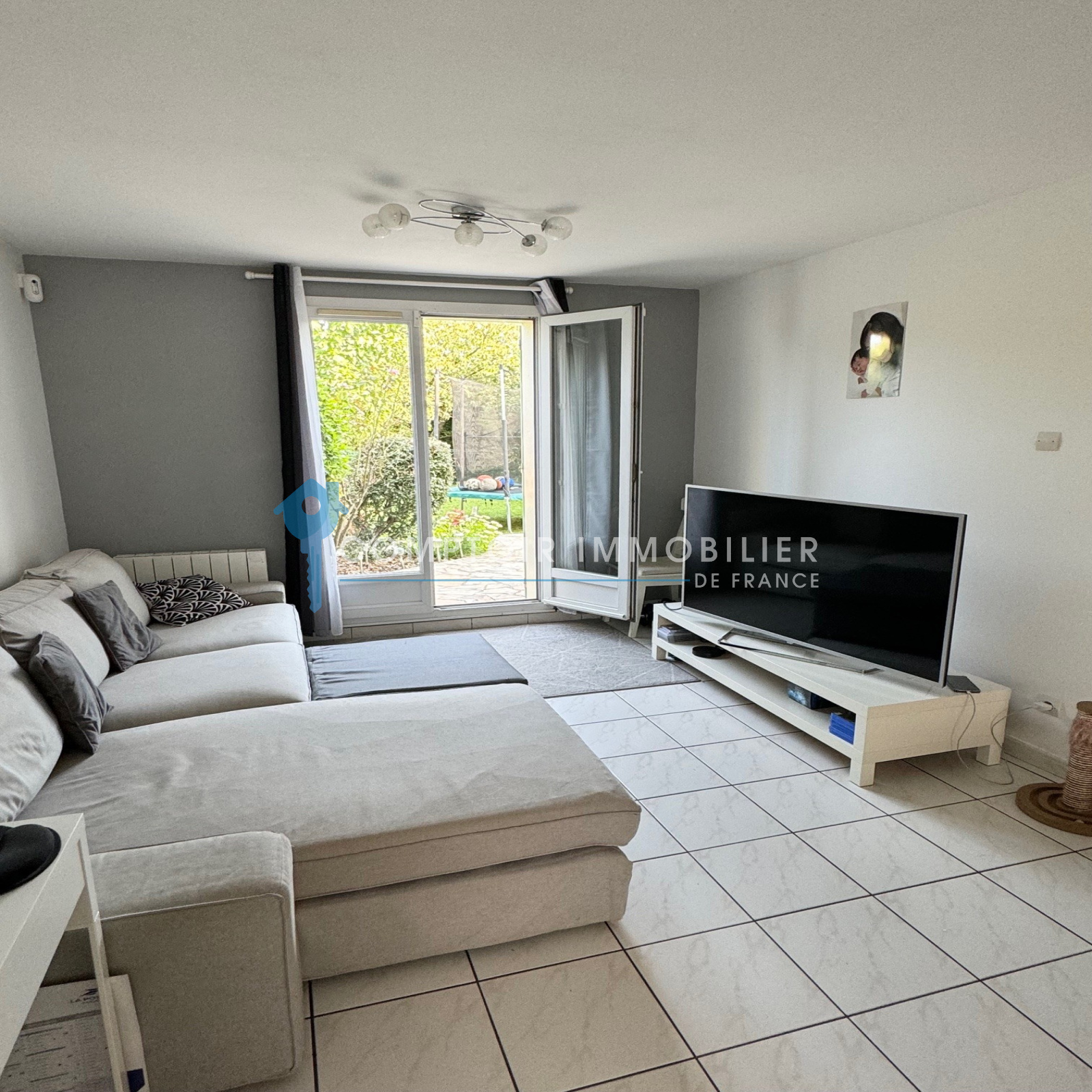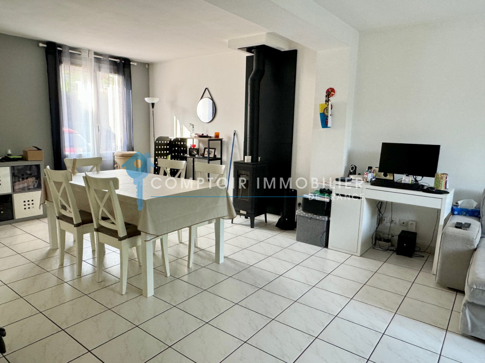 Dept (91) Essonne - A Vendre à Villabé - AGREABLE PAVILLON INDIVIDUEL EN IMPASSE - Idéalement situé dans un environnement calme et résidentiel, ce pavillon de 93 m² se compose au rdc d'un beau séjour lumineux équipé d'un poêle à bois, une cuisine séparée (possibilité de l'ouvrir sur le séjour), un wc. A l'étage: 4 chambres, une salle de bain, un wc séparé, des rangements. Un garage complète ce bien avec en plus 2 places de parking extérieur. Fenêtres PVC. Terrain de 380 m² avec un jardin arboré et sans aucun vis à vis! Gare RER et écoles à proximité!