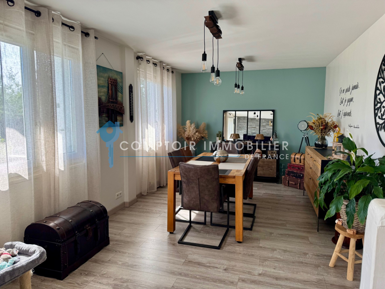 Dept (91) Essonne - A VENDRE à à Villabé - Beau pavillon individuel très bien entretenu de 134 m² utiles (120 m² habitables) avec sous-sol total de 75 m². Il comprend au rdc une entrée, un séjour de 34 m² avec cheminée, une cuisine récente et équipée, une chambre, une salle de bains, un wc, des rangements et un dressing. A l'étage, petite mezzanine, 3 belles chambres et une salle d'eau avec wc. Sous-sol total divisé en un garage carrelé avec espace atelier, une buanderie, une chaufferie et une cave. Porte automatisée. AUCUNS TRAVAUX, fenêtres PVC, chauffage gaz (chaudière à condensation neuve), VMC neuve... Terrain de 396 m² arboré avec terrasse et abri barbecue. Situé au calme, proche des écoles et gare RER à 15 min à pieds. Honoraires charge vendeur COMPTOIR IMMOBILIER DE FRANCE - Estelle PELLETIER conseillère à Villabé - 06 22 92 06 57 - Plus d'informations sur www.cif-immo.com (réf. 13880) --