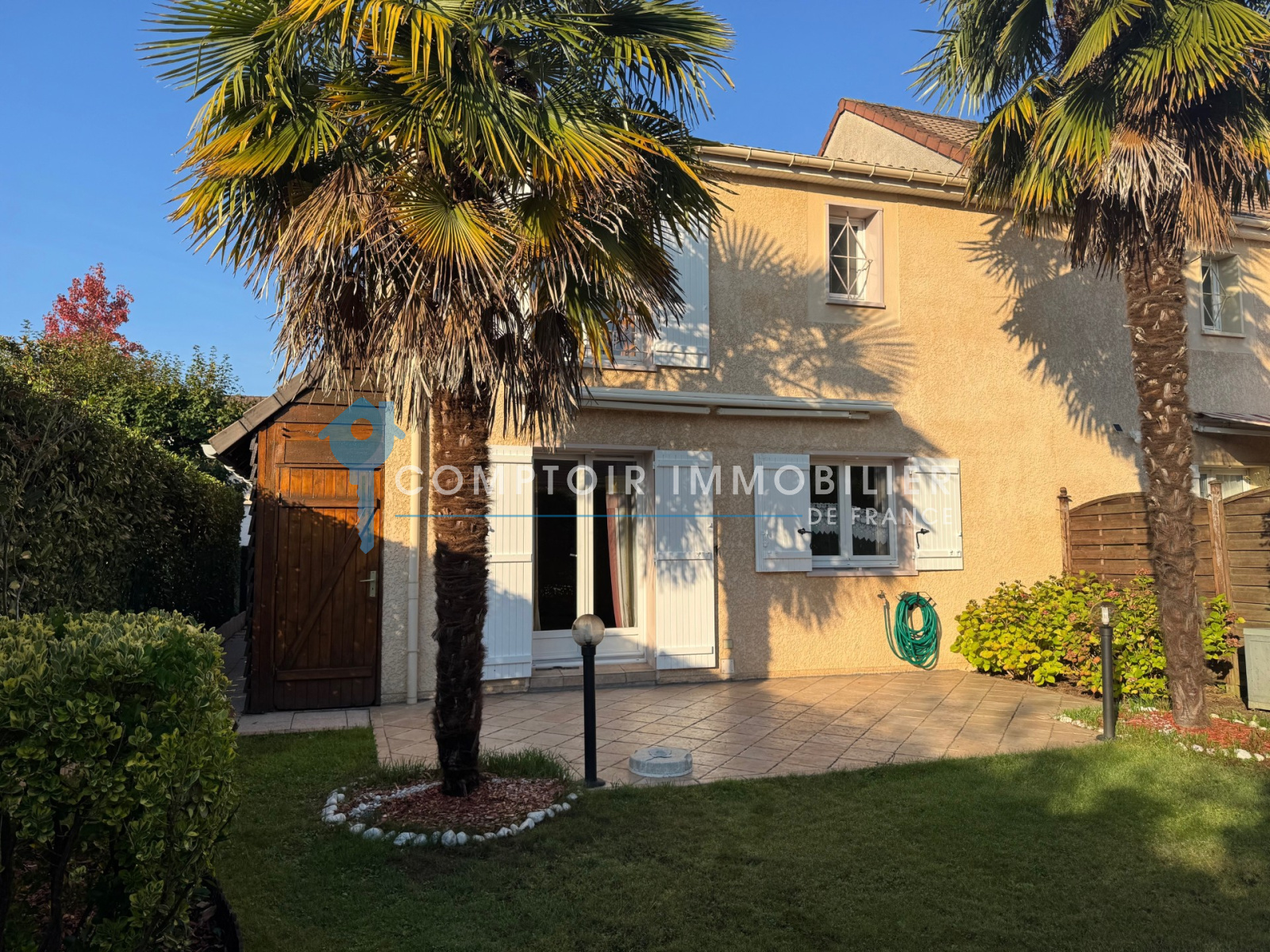Dept (91) Essonne - A Vendre à Villabé - AGREABLE PAVILLON de 89 m² dans secteur calme et résidentiel. Il se compose au rdc d'un sas d'entrée, une cuisine (possibilité de l'ouvrir sur le salon), un séjour double avec une cheminée, un wc, un garage avec porte automatisée. A l'étage, 3 grandes chambres (11,40 m², 15 m² et 13,65 m²) avec des rangements, une salle de bain avec une fenêtre et un wc séparé. Fenêtres PVC. Joli jardin clos et paysagé, et sans vis à vis! Un abri bois et un abri de jardin. Pavillon entretenu proche du RER et des écoles (à 5/10 minutes à pied!).