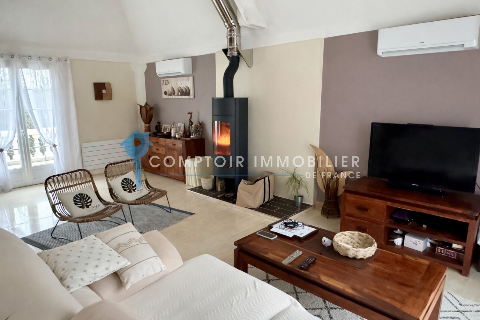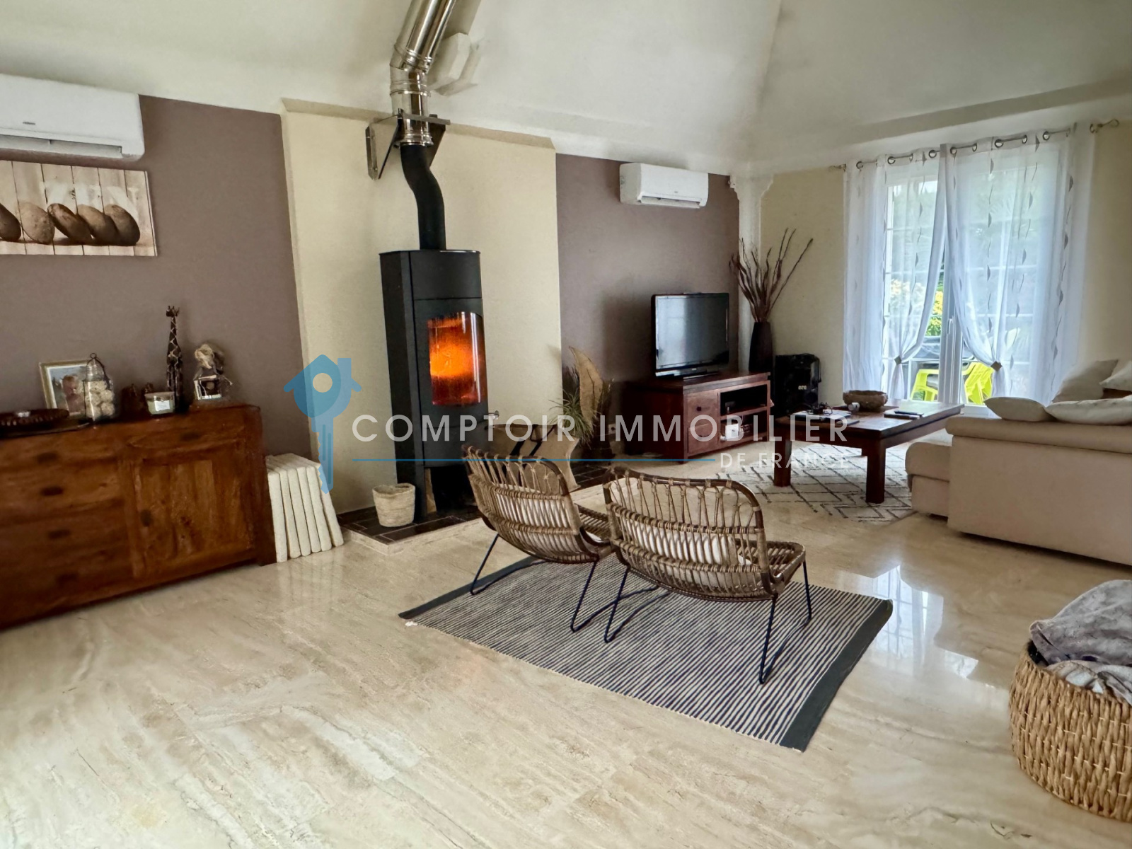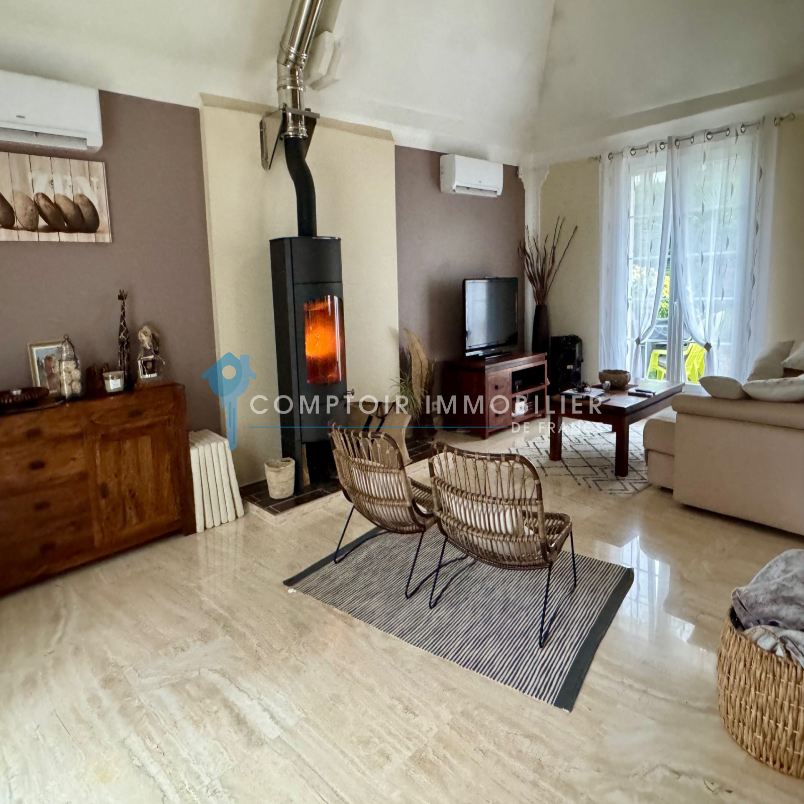 - Prestations de qualité: clim réversible au rdc, fenêtres PVC, sol en marbre italien....