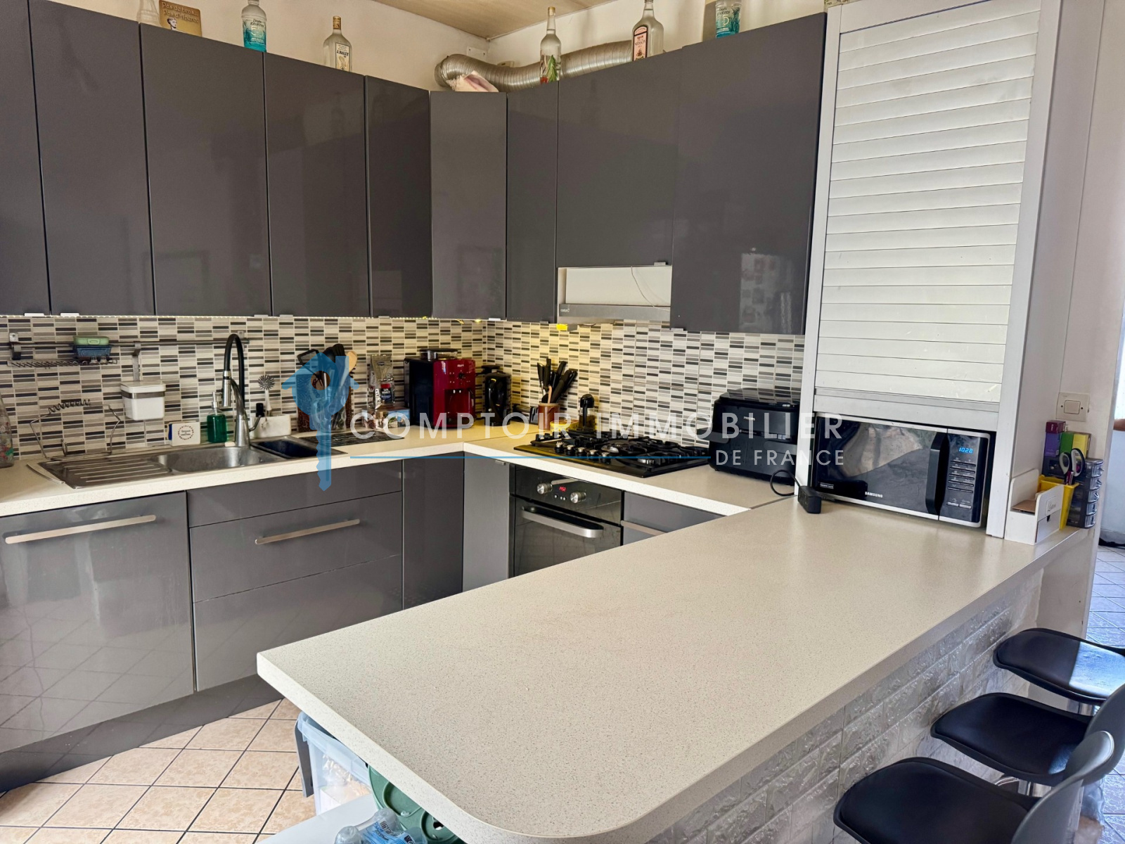 Elle comprend au rdc: une cuisine moderne et équipée ouverte sur séjour avec un poêle à granules, une salle à manger, une agréable salle de bain avec douche italienne et baignoire, un wc indépendant.
