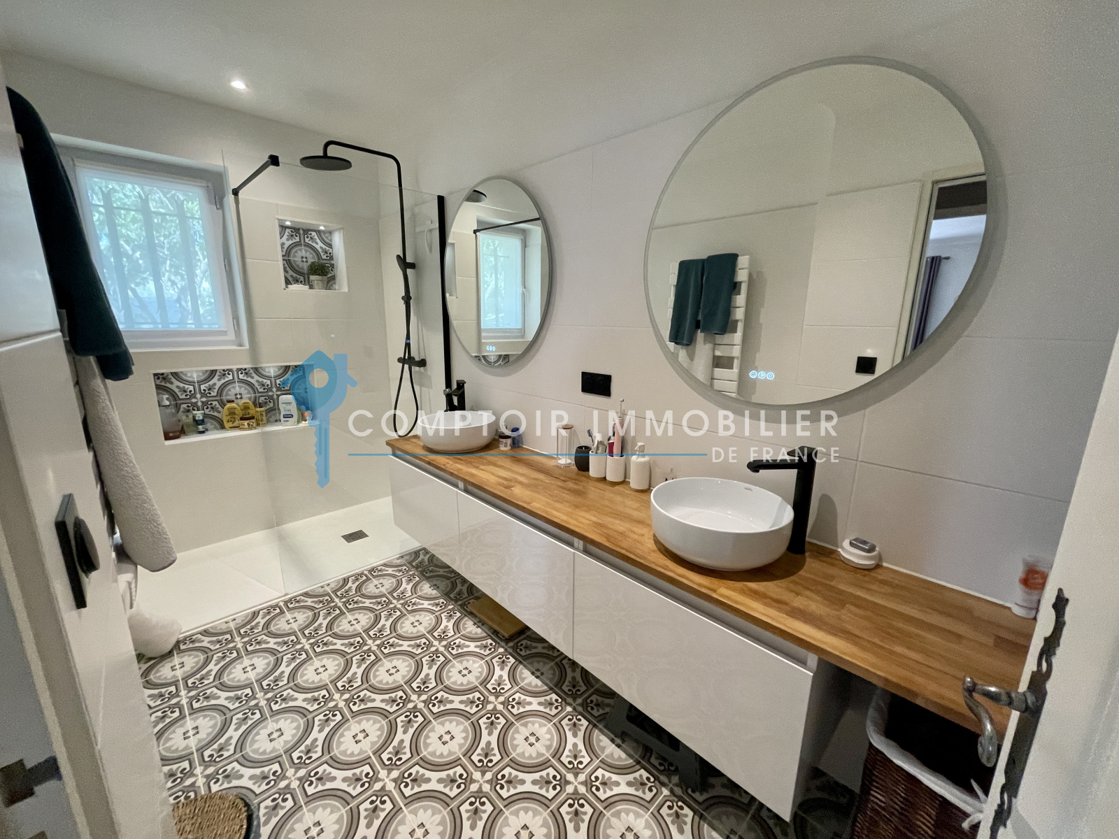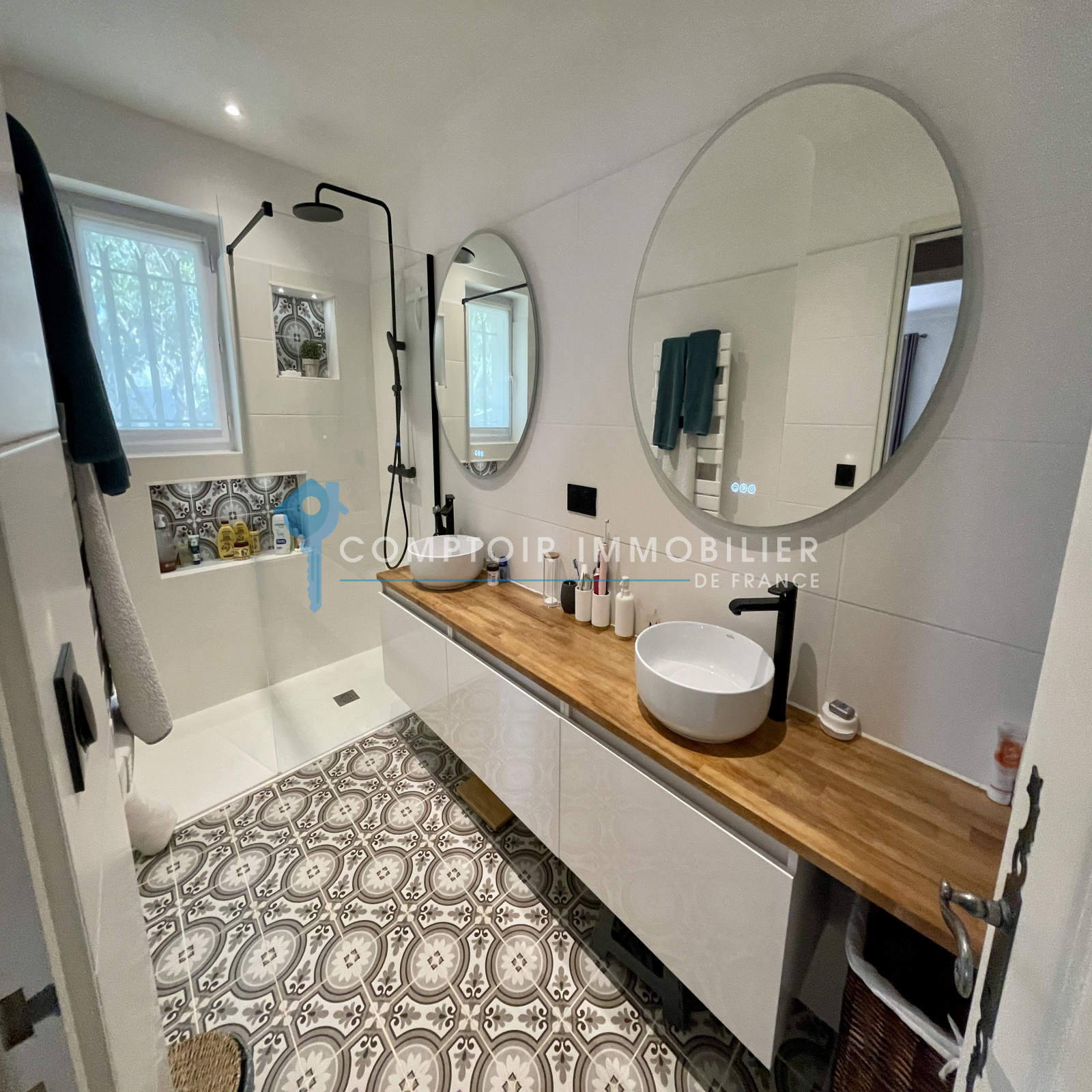 En exclusivité, Au calme et l'abri des regards, cette sublime villa entièrement rénovée d'environ 140 M2 sur 1500 m2 de terrain dont une partie est divisible vous séduira par sa décoration et ses volumes.