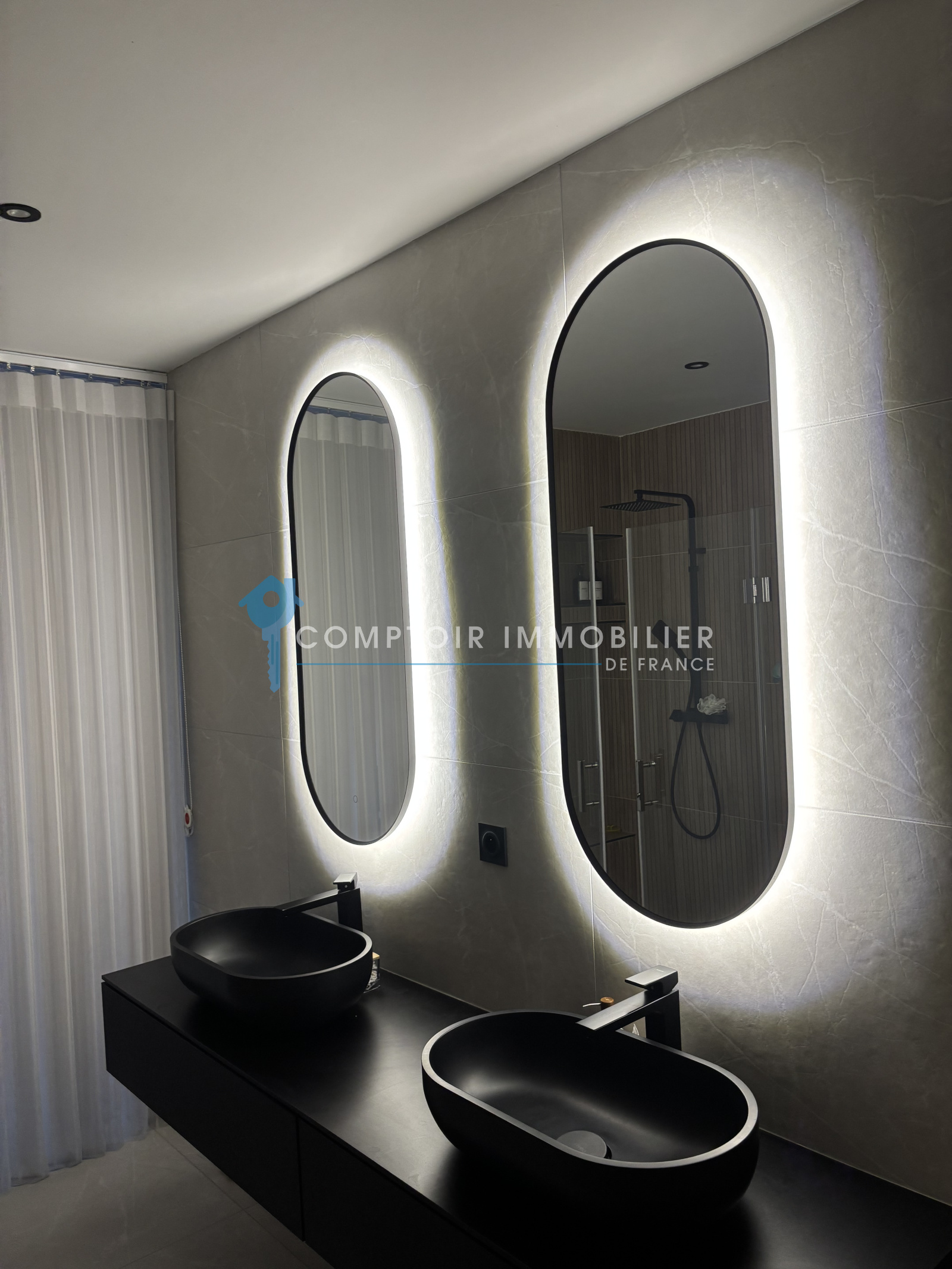 - les prestations : portail automatique, piscine, climatisation gainable, eau chaude thermodynamique, fibre optique, vidéo-surveillance, volets persiennés, carrelage 120x120, cuisine entièrement équipée