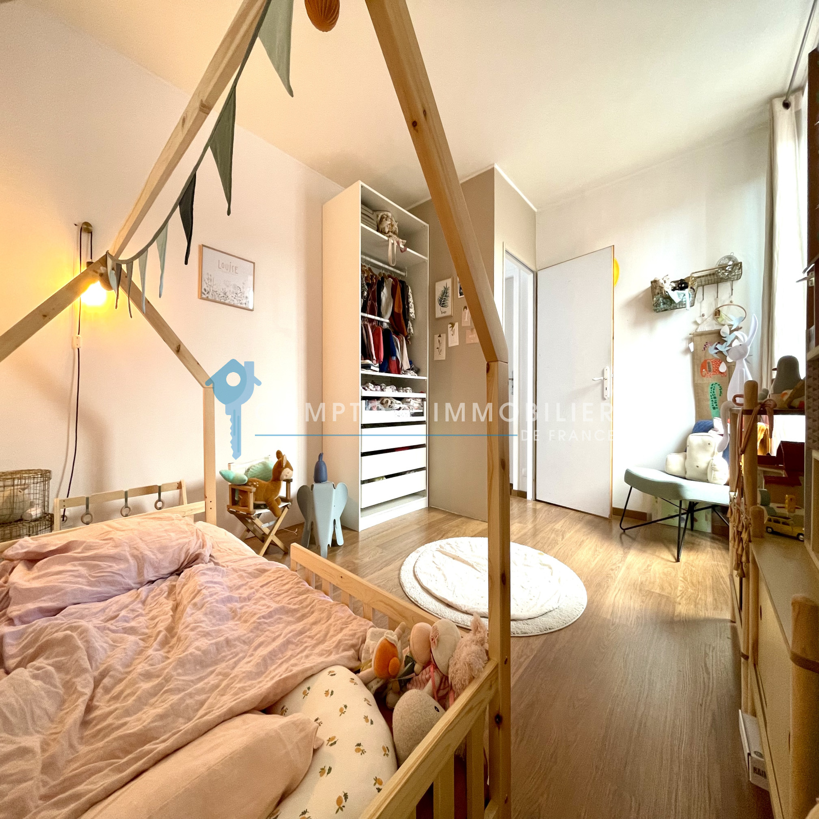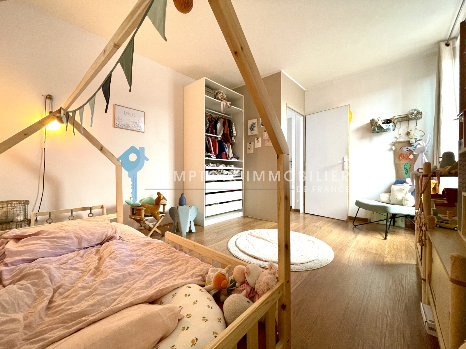 -Au premier étage, 2 belles chambres de 13,5m2 chacune, un salle d'eau de plus de 10m2 et un large pallier pouvant être utilisé de différentes façons (chambre, dressing, bureau).