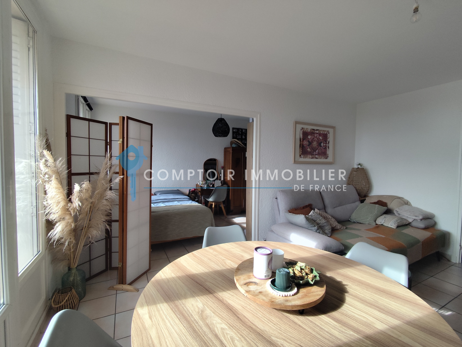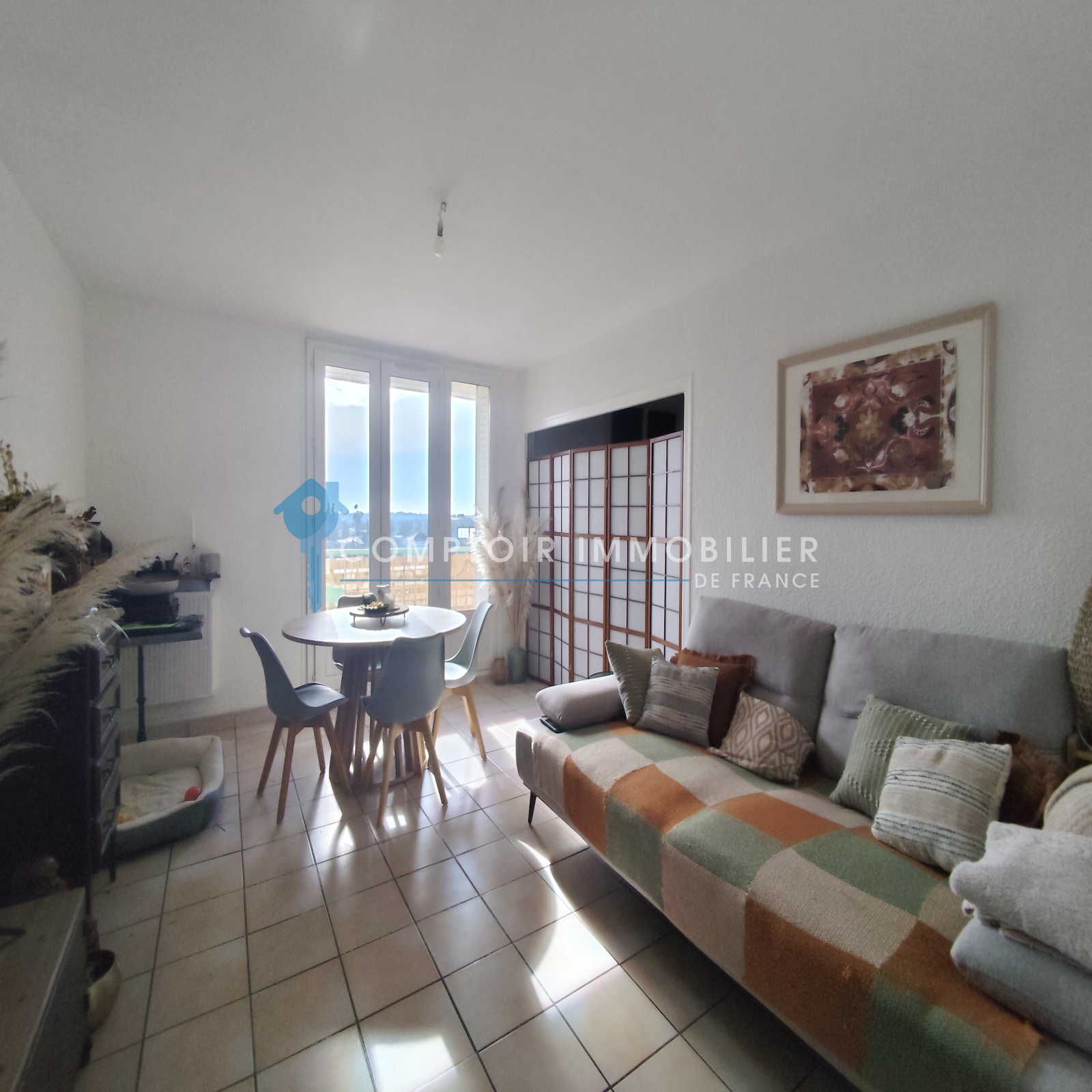 La cuisine quant a elle est légèrement séparée et complètement équipée d'une cuisine récente et élégante.