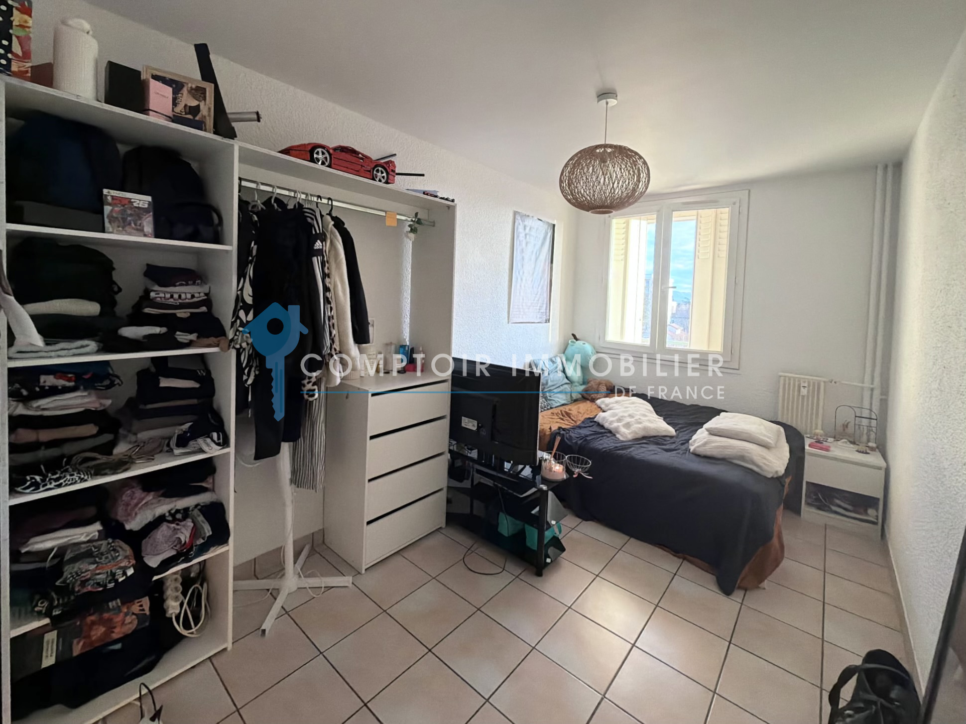 L'entrée desserte 2 chambres de 12 et 13m2, puis vient la pièce de vie de 29m2 avec accès au balcon de 5m2. La partie salle à manger est actuellement aménagée en chambre et pourrait facilement être recloisonnée pour créer une véritable 4ème chambre.