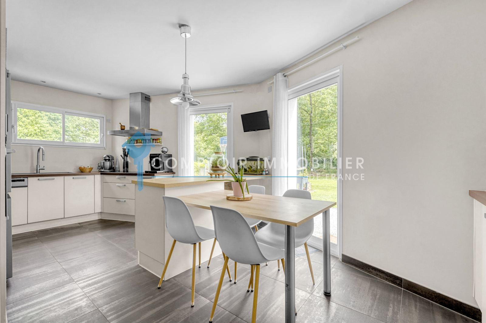 À l'orée d'un bois, dans un environnement champêtre, venez découvrir cette magnifique villa d'environ 170 m² en exclusivité. Dès l'entrée, vous serez accueillis par un hall spacieux menant à une pièce de vie déplafonnée avec poêle à bois. La cuisine, équipée et aménagée sur environ 20 m², peut être ouverte ou indépendante selon vos envies.
