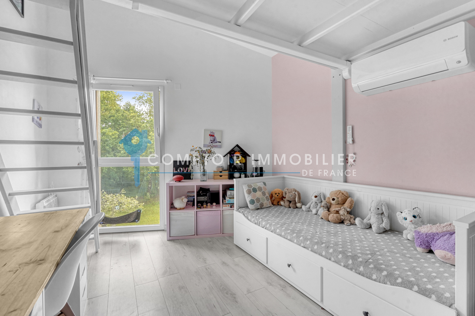 L'espace nuit comprend quatre chambres, dont deux au rez-de-chaussée avec suite parentale, dressing et une spacieuse salle de bain. À l'étage, une mezzanine d'environ 25 m² offre deux espaces distincts : un coin lecture et un bureau, ainsi qu'une salle d'eau. Une surprise attend les enfants dans leurs chambres.