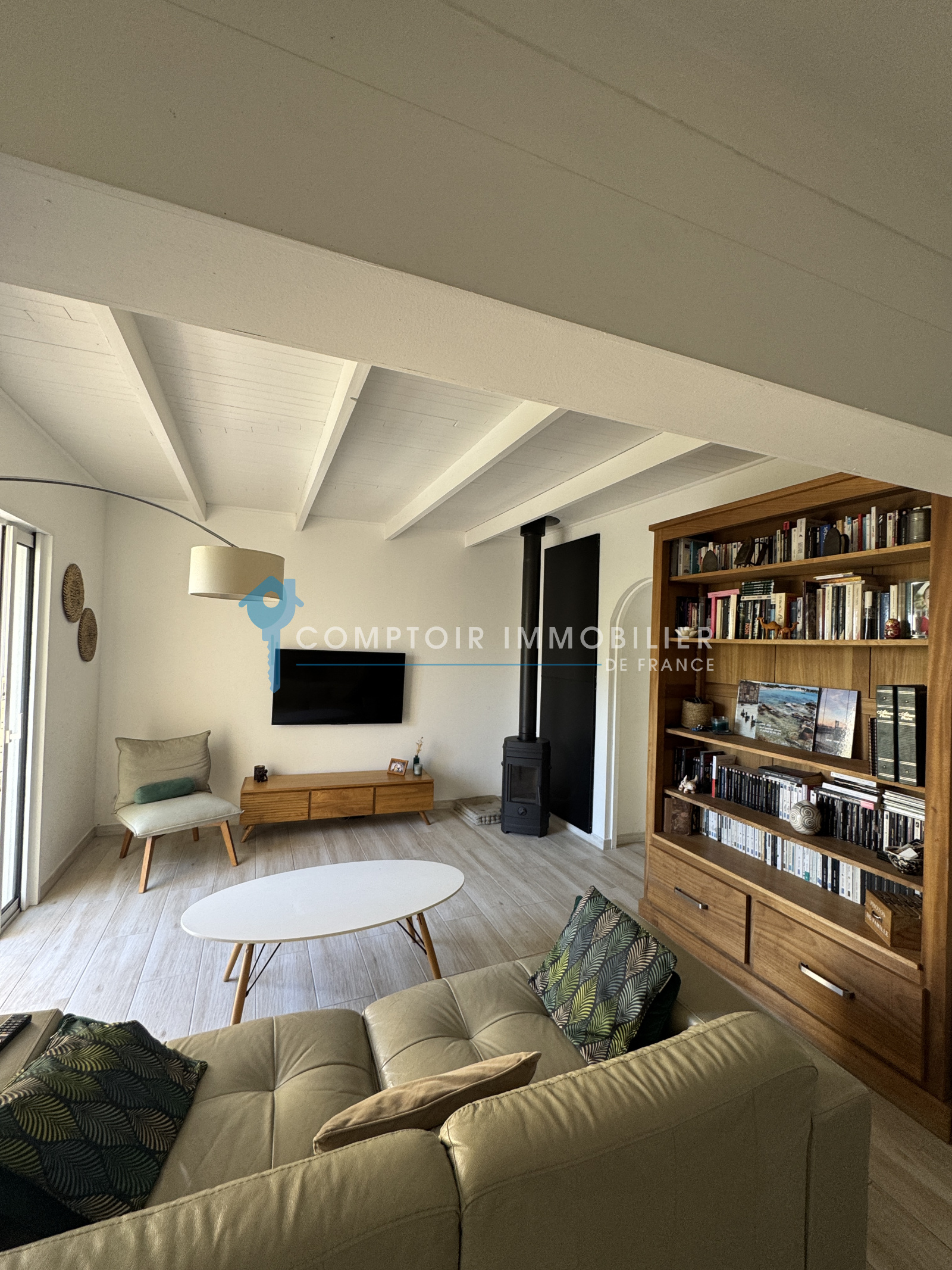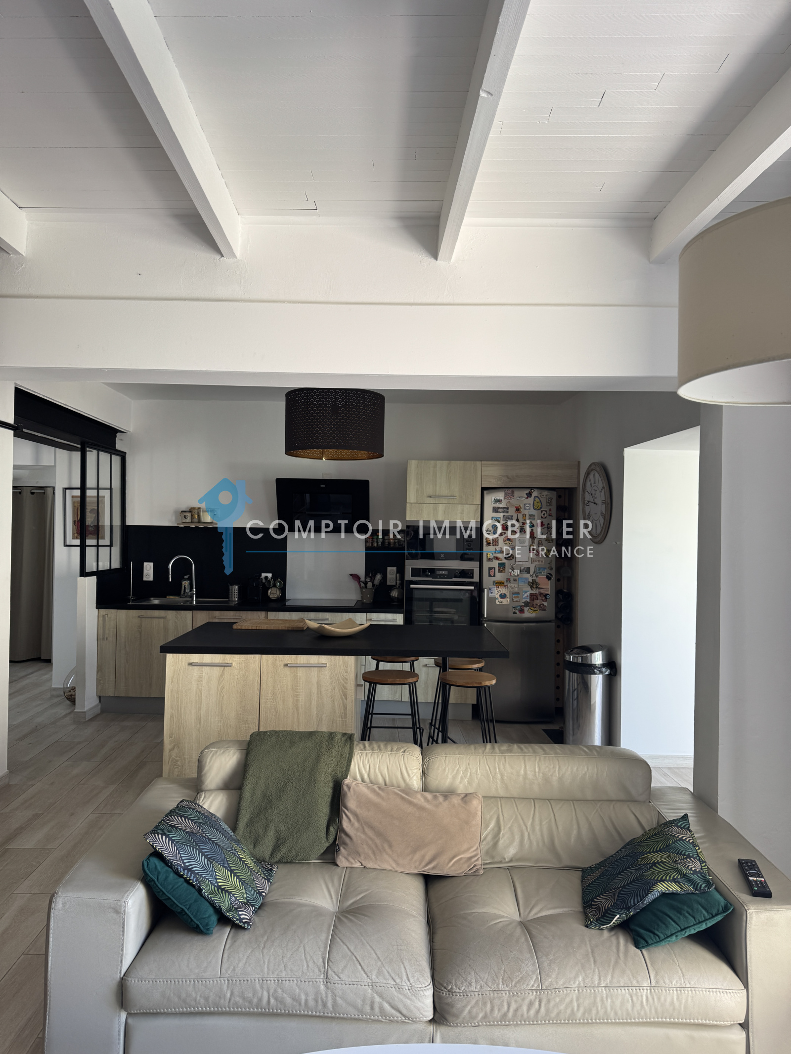 •Une pièce de vie lumineuse avec cuisine équipée, salon avec poële