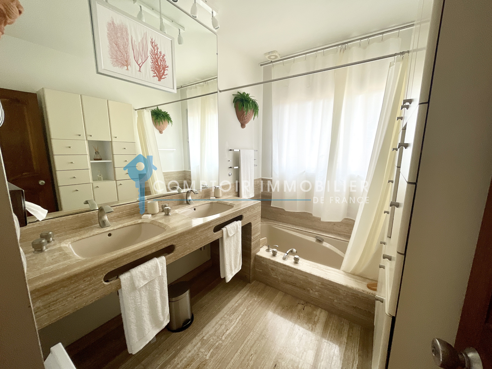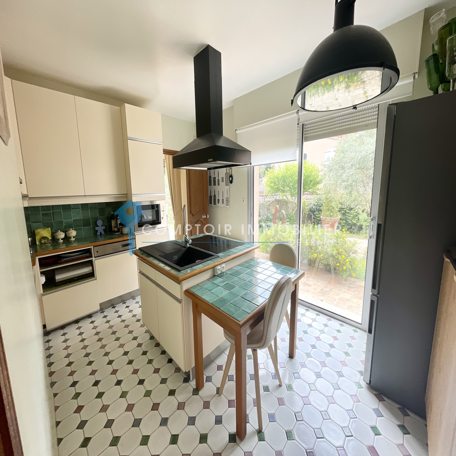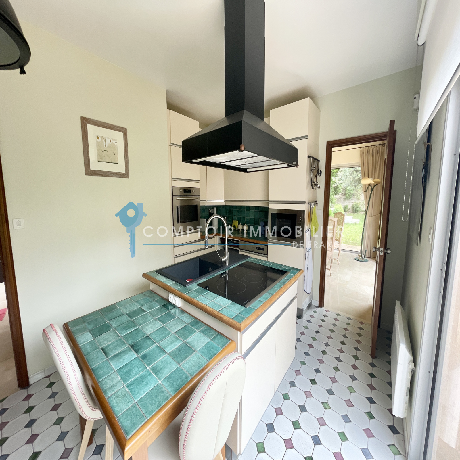 Vous découvrirez un hall avec rangement, un séjour avec une belle cheminée, une cuisine séparée équipée, 2 chambres et une belle salle de bains en marbre, et wc .