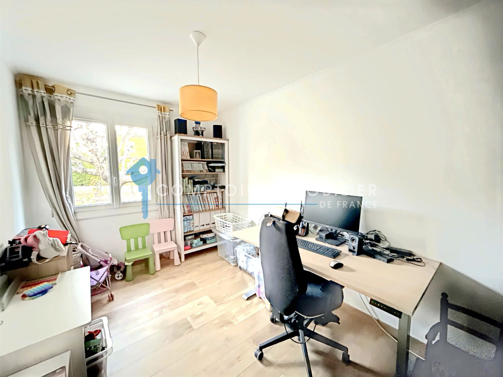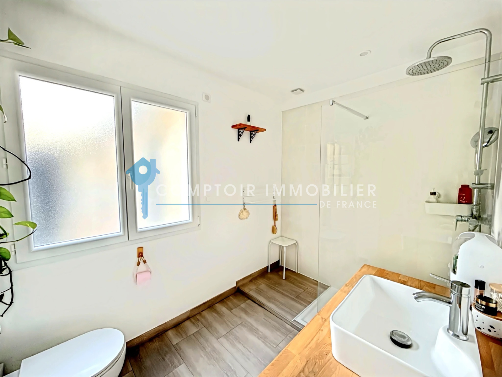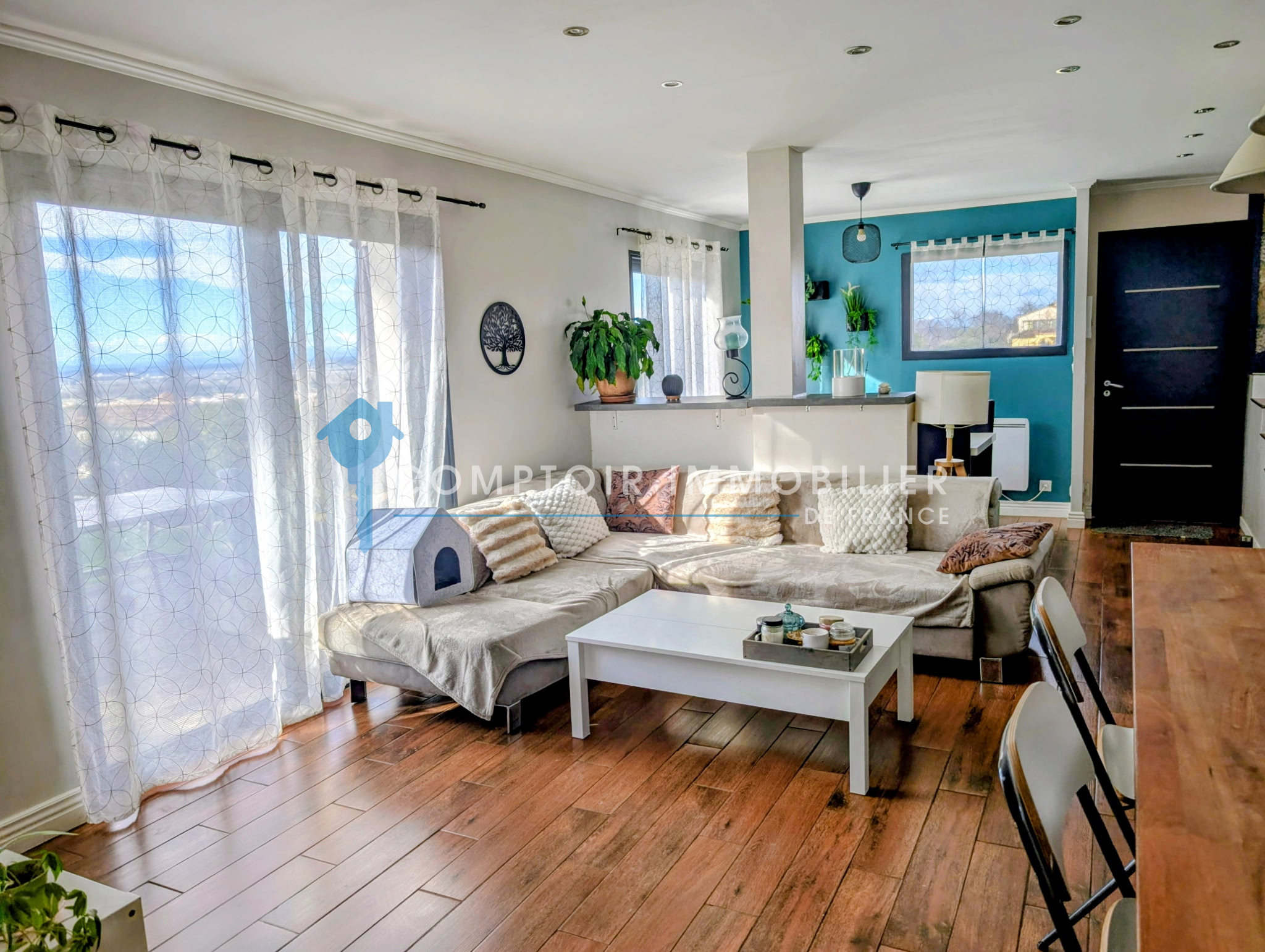 Dès l'entrée , vous serez séduits par une grande pièce de vie baignée de lumière avec sa cuisine moderne et équipée avec sa buanderie .
