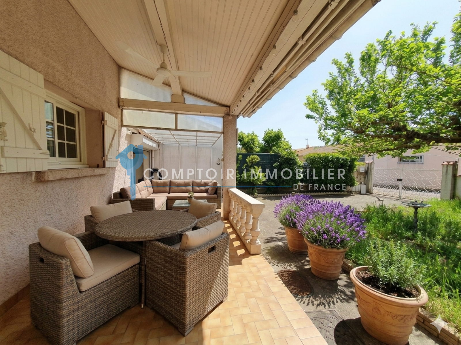 CAISSARGUES : Dans une impasse au calme, villa sur 2 niveaux comportant 4 chambres dont 2 en rez de chaussée, salle à manger avec cuisine équipée, séjour lumineux avec cheminée insert. Garage avec coin cellier et mezzanine pouvant être aménagé en studio indépendant. 2 annexes en rez de jardin. Combles accessibles par une chambre sur dalle pour environ 30 m2 de surface. Jolie terrasse permettant de profiter du jardin et de l'ensoleillement en toute saison. Cette maison, avec quelques suggestions d'aménagement sur certaines photos en intérieur comme dans le jardin bénéficiant d'un forage, offre un énorme potentiel pour obtenir un bien encore plus agréable dans un endroit calme et proche de toutes commodités à pied. Le trambus de Nîmes est accessible à 3 minutes de voiture.
