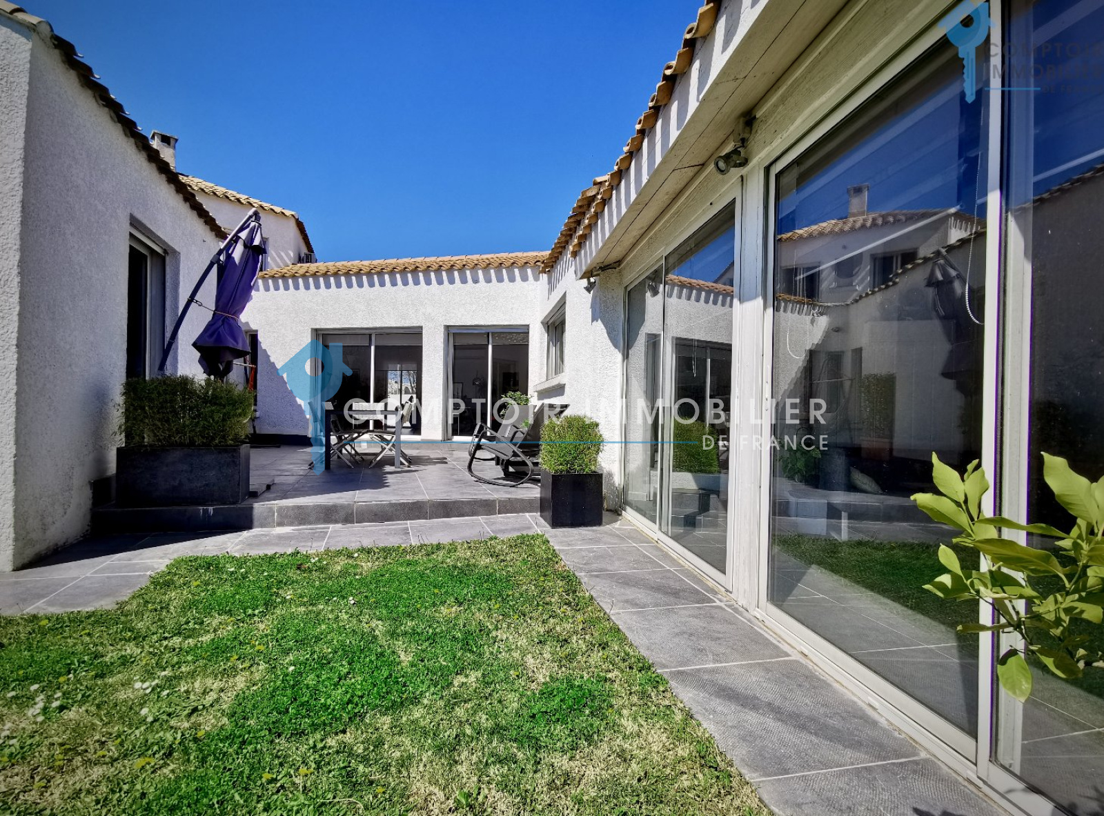 EXCLUSIVITE ! A 5 min de MONTPELLIER et à 10 min des plages, idéalement située dans un quartier résidentiel de LATTES-CENTRE, GRANDE VILLA d'ARCHITECTE, très FONCTIONNELLE, avec GARAGE et PISCINE, sur bel espace paysagé d'env 570 m2 !!! A vivre : sur env 185 m2 hab. tournant autour d'un patio extérieur admirablement orienté, un très beau séjour avec plafond-cathédrale, traversant, agrémenté d'un chaleureux espace détente avec cheminée, une grande cuisine semi-ouverte entièrement équipée, 4 chambres (dont 3 en rez-de-chaussée) incluant une suite parentale avec sa salle-de-bains et son dressing, un bureau... Bonus : un grand garage avec buanderie attenante (+30 m2) ! De TRES BONNES PRESTATIONS générales : climatisation réversible, volets roulants électriques, 3 pièces d'eau (dont une salle-de-bains), 2 wc séparés + wc extérieur (piscine), pool-house aménageable l'hiver (baie alu en double-vitrages), arrosage automatique, forage... Du CACHET, une belle LUMINOSITE et une très agréable ZENITUDE à proximité de tous les commerces, commodités, écoles, bus, tram, aéroport, gare TGV... et PLAGES ! Vous vous sentirez PRIVILEGIES !!! Honoraires charge vendeur COMPTOIR IMMOBILIER DE FRANCE - Ludwig DAIZIS - 06 60 62 06 25 - Agent commercial RSAC N° 329 127 112 - Ville du greffe : MONTPELLIER - Plus d'informations sur www.cif-immo.com (réf. 14544) -- Informations CORONAVIRUS : Nos visites s'effectueront avec la mise en place d'un protocole sanitaire, notamment avec le port d'un masque et dans le respect des gestes barrières, afin d'assurer la protection de tous. --