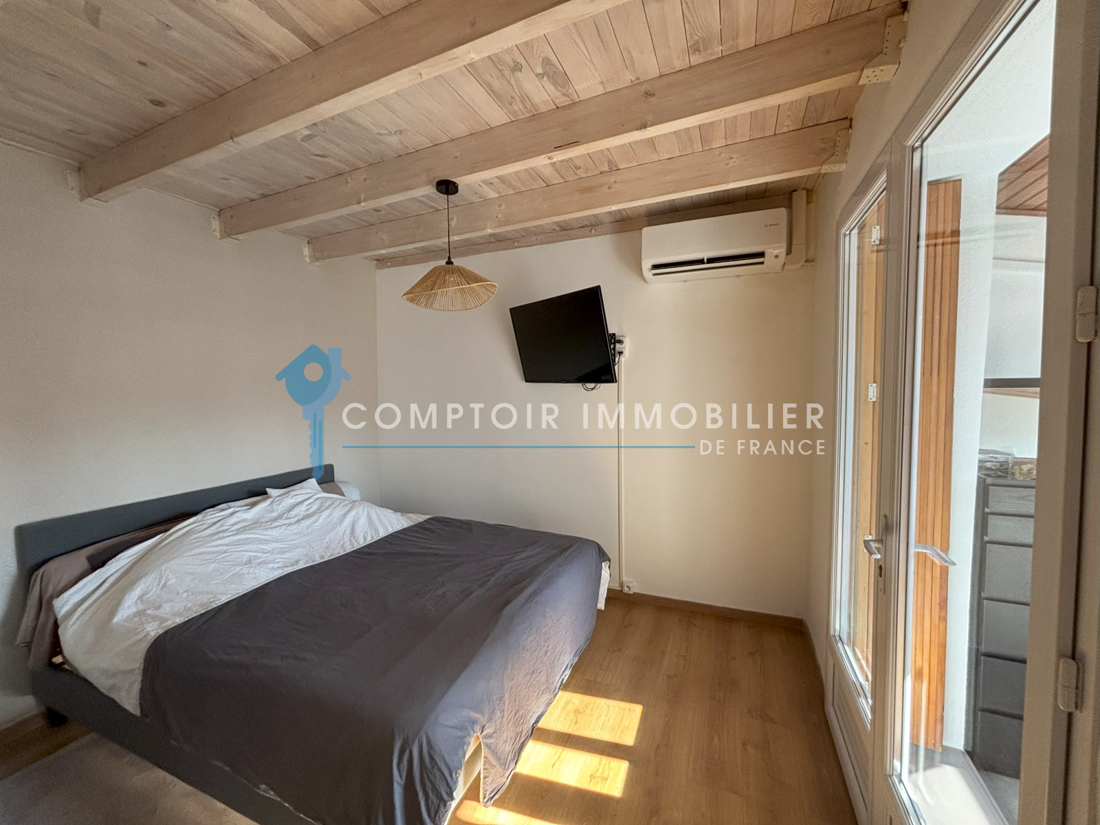 La maison est équipée de la climation au RdC et 1er étage, menuiseries PVC double vitrage, volets roulants.