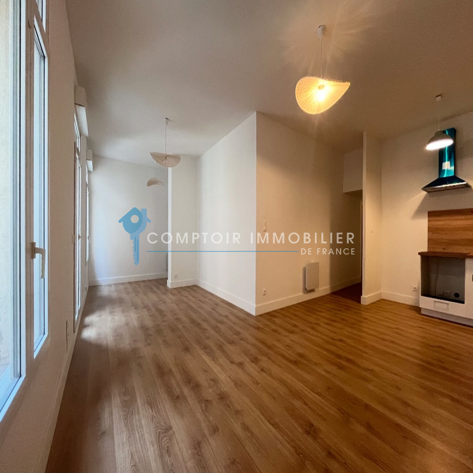 Ce T3, situé au premier étage d une petite copropriété, dispose d une piéce à vivre avec séjour et cuisine neuve semi équipée, ainsi que d' une salle d eau avec WC separés et deux chambres.