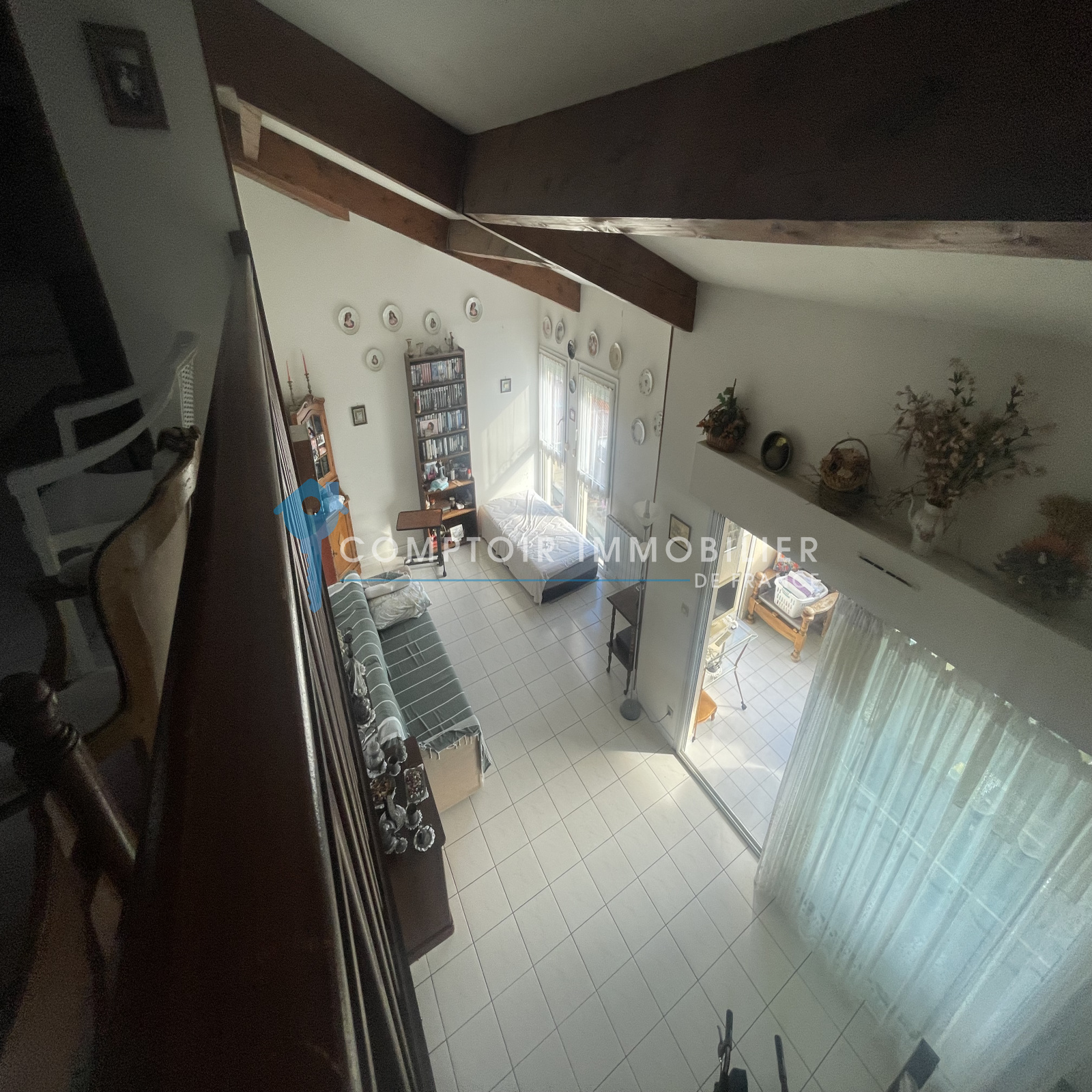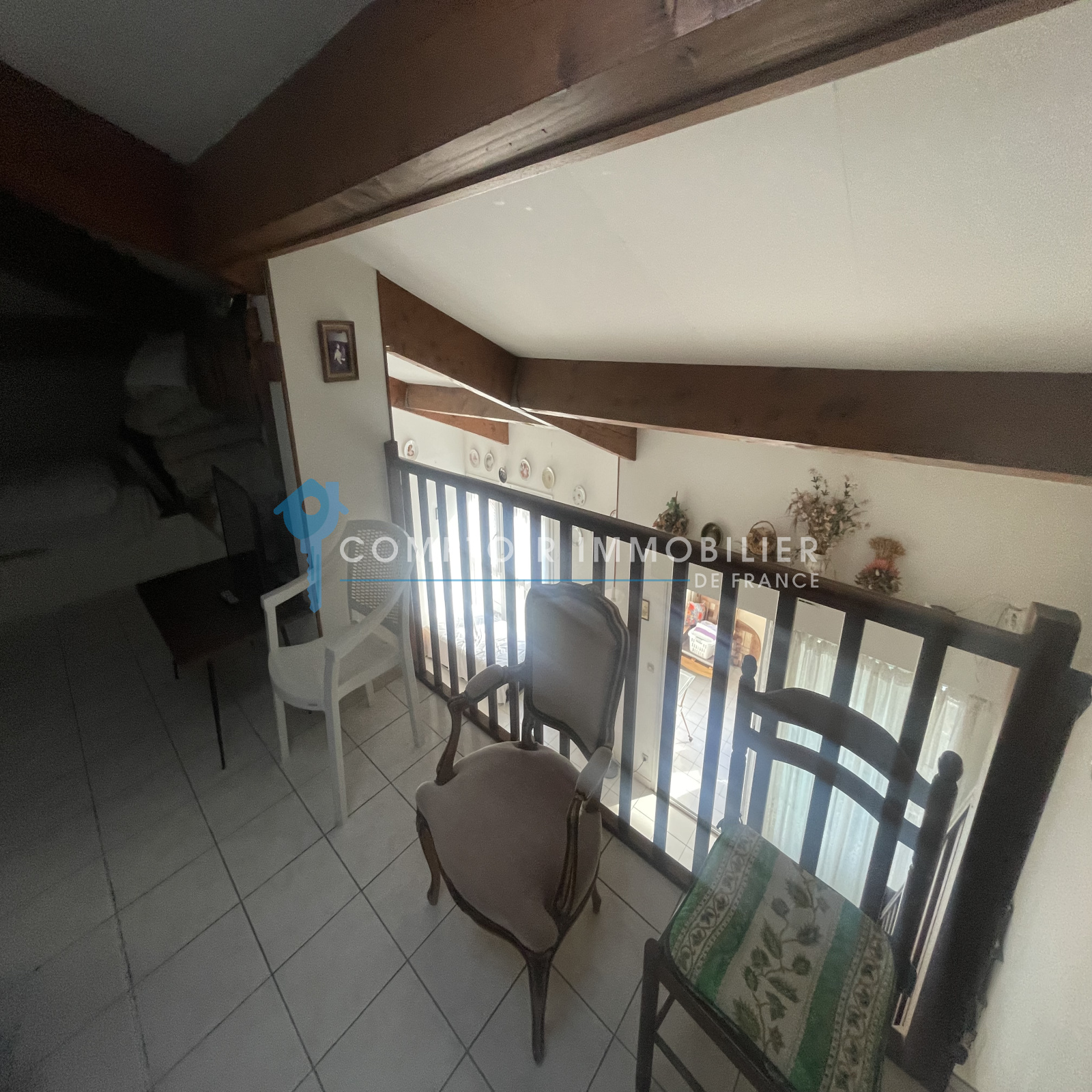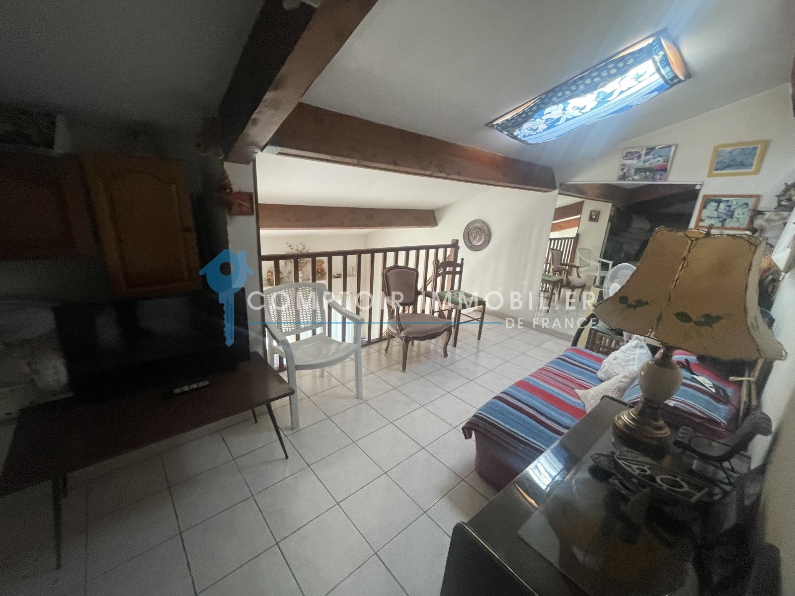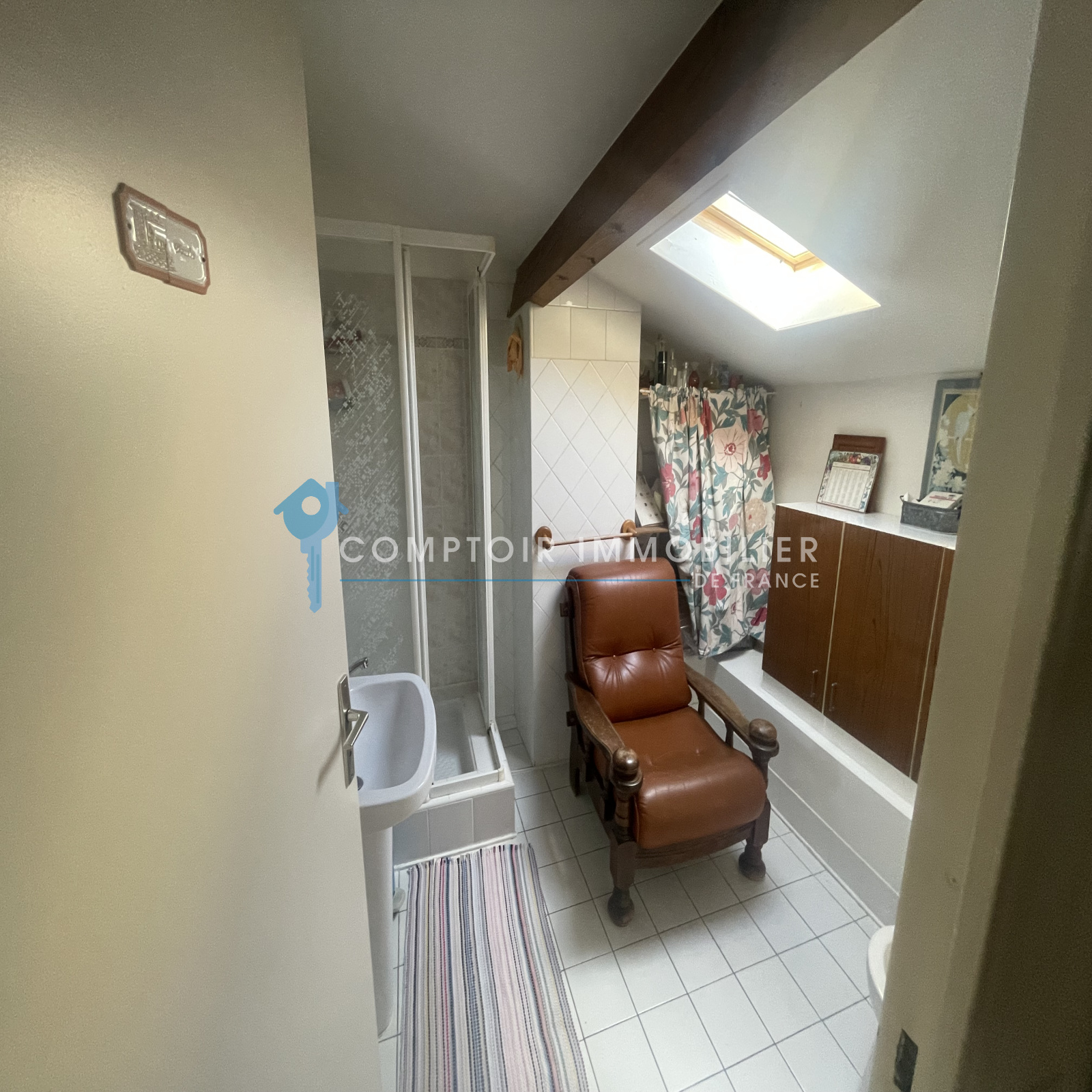 A l'étage vous trouverez un grand espace pour chambre ou bureau ainsi qu'une salle d'eau.