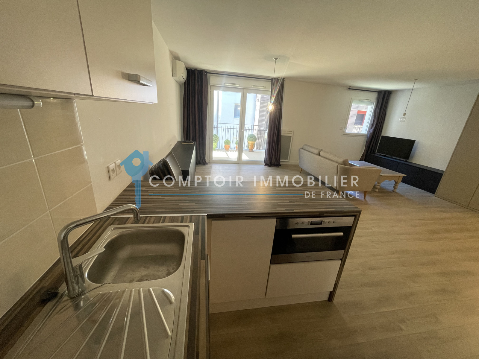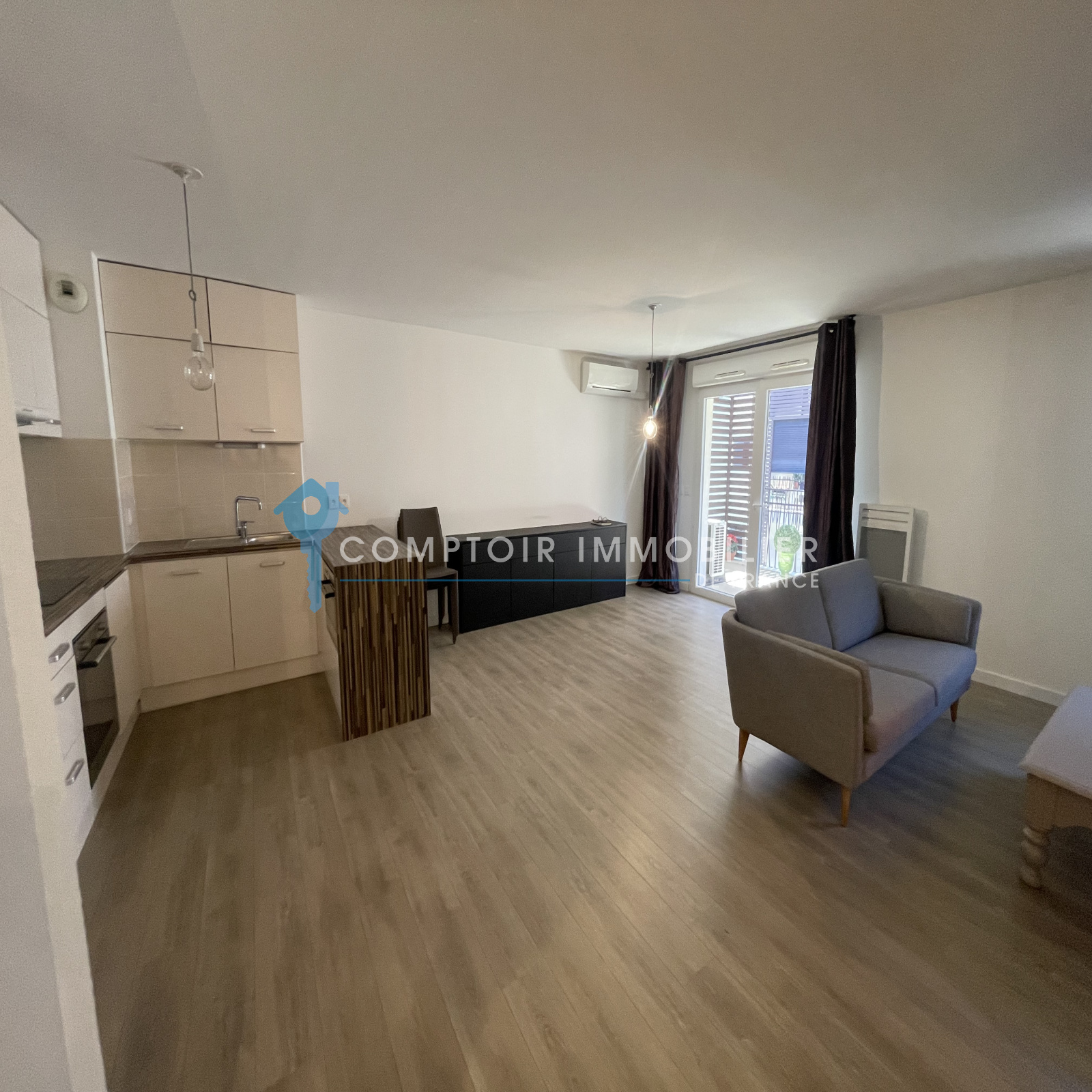 Il se compose d'une cuisine équipée ouverte sur un confortable séjour et une terrasse de 8 m2 environ, une chambre avec rangements, une salle de bains et un large wc séparé. La climatisation, le ballon thermodynamique vous apportent tout le confort.
