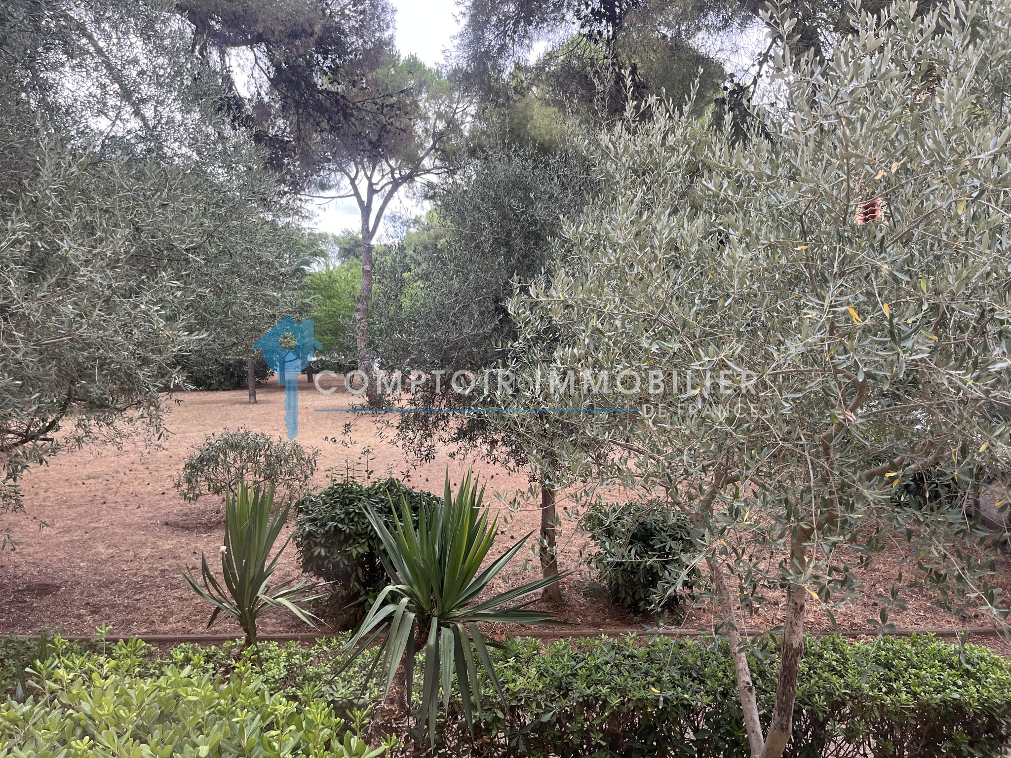 En rez de chaussée surélevé, il se présente ainsi : une cuisine équipée avec une loggia, faisant office de buanderie ou d'arrière cuisine, un salon/salle à manger qui donne sur le parc arboré de la résidence, ainsi qu une salle d eau avec douche à l'italienne et une chambre, avec un débarras de 3m2 environ.
