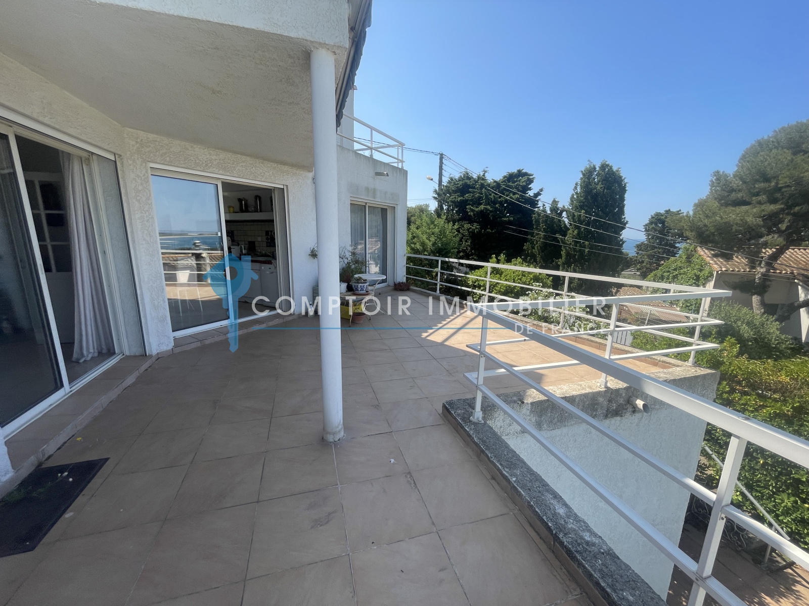 Sur les deux niveaux les pièces ont une terrasse et une vraie vue mer.