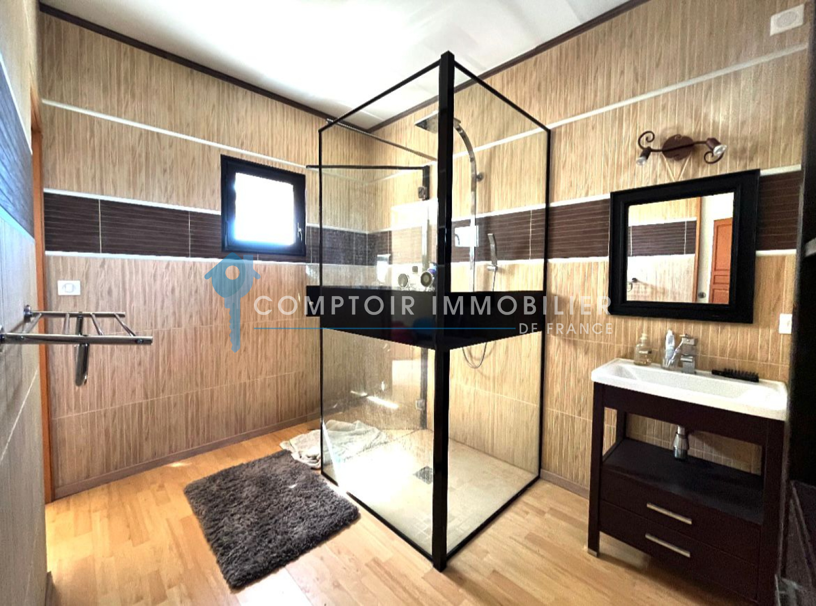 Elle se compose d'un HALL d'entrée desservant un immense salon sejour, cuisine orientée vers l'étang, une suite parentale avec dressing et salle d'eau; 2 chambres avec salle d'eau commune attenante.