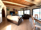 Des matériaux de qualité valorisent cette batisse (large cheminée, plancher chauffant, climatisation, menuiseries et bien évidemment une vue omni présente
