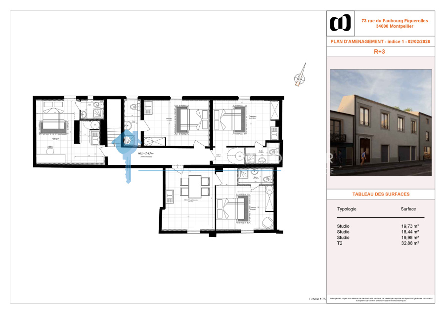 Appartement 3 pièce(s) 2 chambre(s) 63 m²