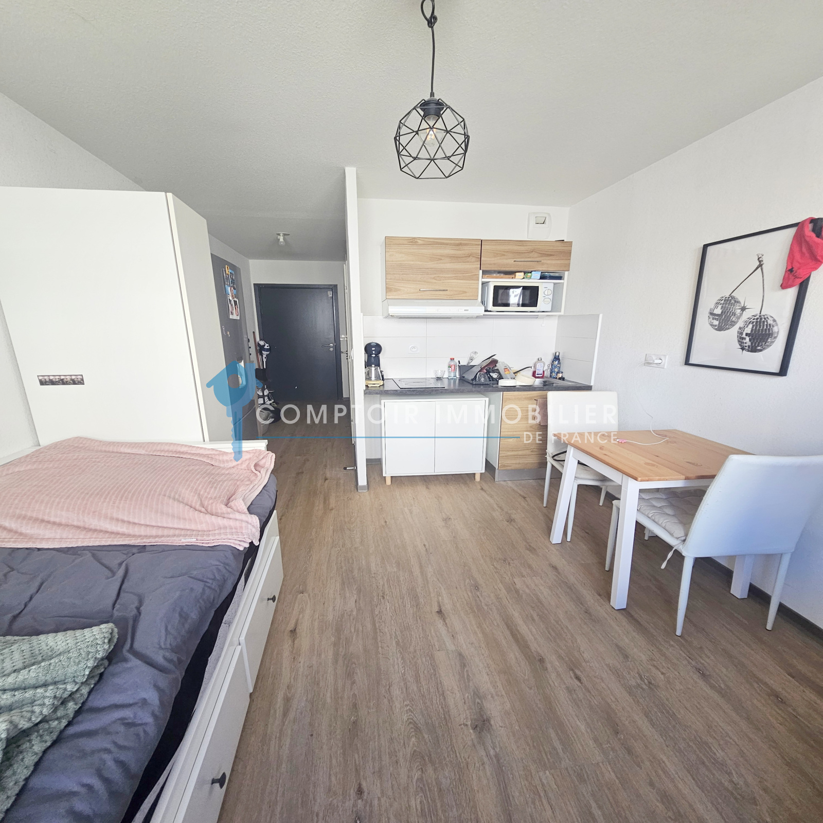 Montpellier Sud / Cité Mion dans une résidence neuve de 2021 venez découvrir au premier étage avec ascenseur, ce studio de 19 m² avec son parking en sous sol!!!! Au calme, lumineux et proches de toutes les commodités (proximité immédiate tram, commerce, autoroute). Cet appartement est vendu loué meublé 495 euros charge comprise. Soyez réactif. Agence Jnca Anton Camille O786112978.