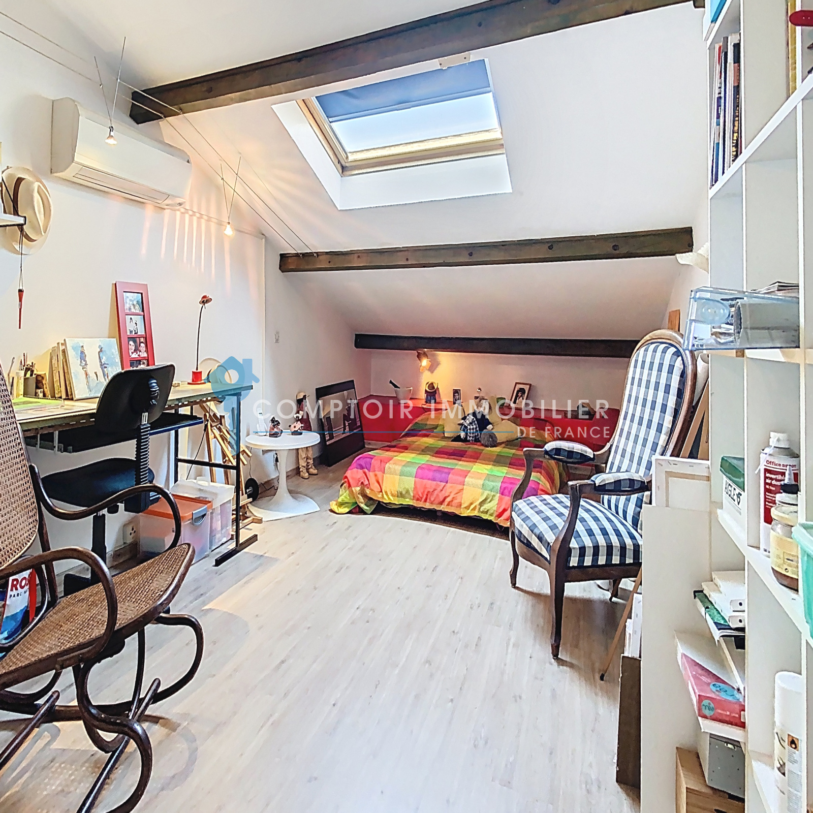 Au 1er étage : une salle d'eau, WC, un bel espace que vous pourrez utiliser en dressing ou bureau, une grande chambre de 20m2 avec velux.