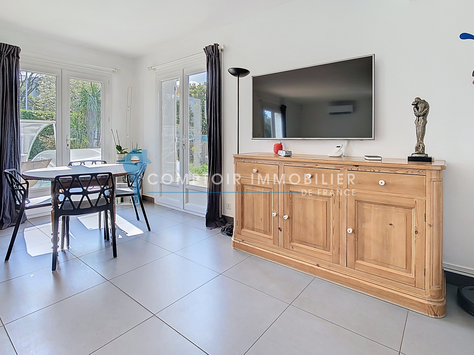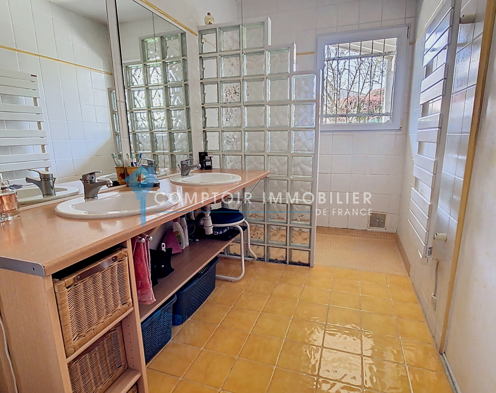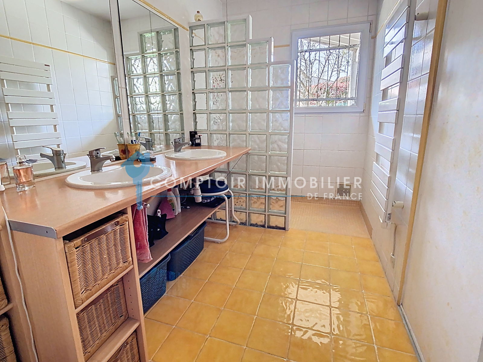 Au rez de chaussée: une entrée, grand salon/ séjour de 40 m2 très lumineux avec une triple exposition et de grandes ouvertures (Sud Est Ouest), cheminée avec insert, une belle cuisine ouverte, entièrement équipée s’ouvrant sur l’une des terrasses du jardin arboré. Le coin nuit se compose de 3 chambres, une grande salle d'eau, WC