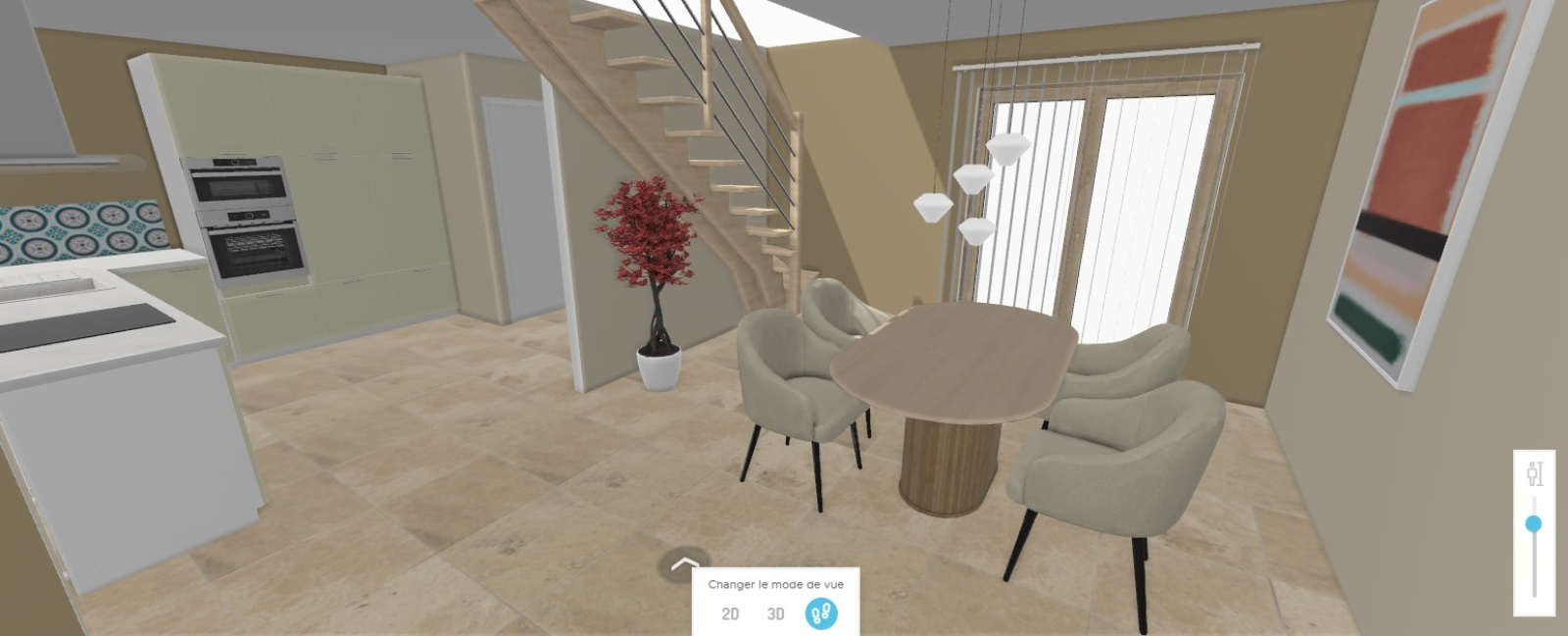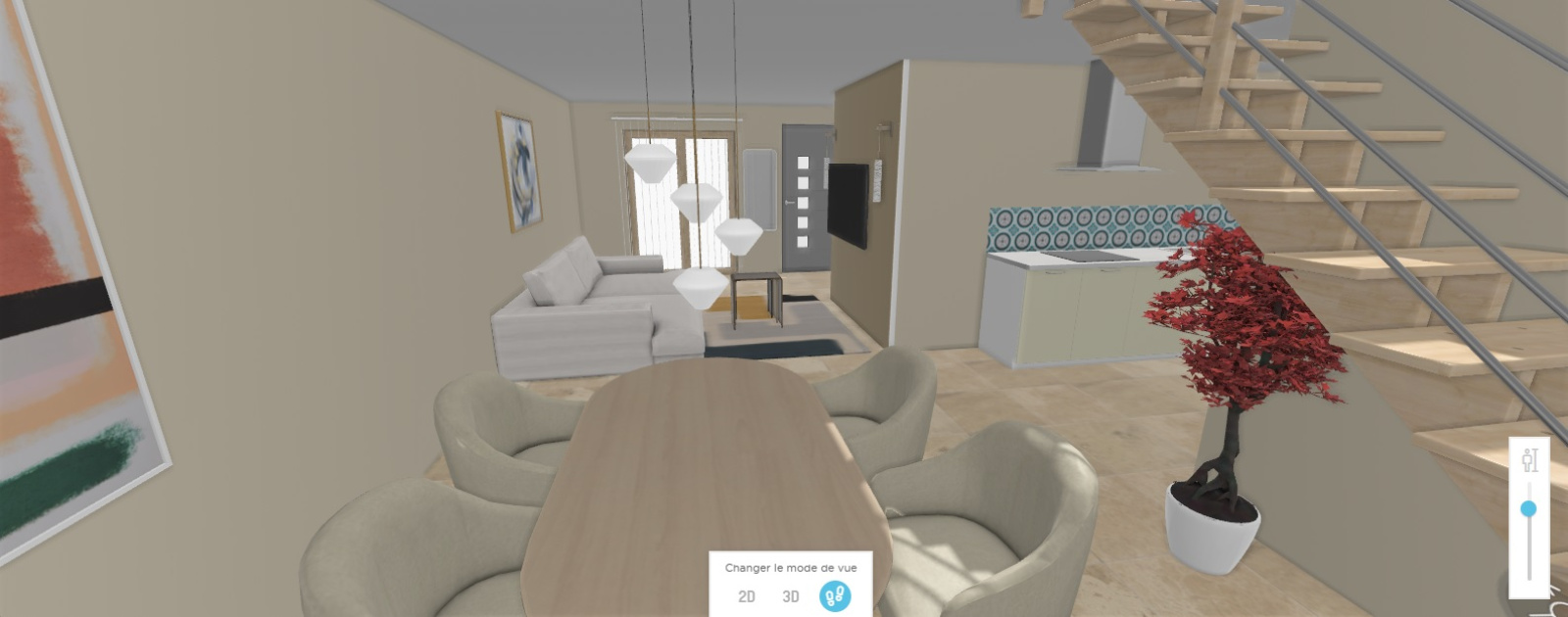 Au rez-de-chaussée : entrée, WC, salon, salle à manger, cuisine aménagée, cellier, garage.