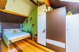 A l'étage, 2 chambres et une salle de bains avec WC.