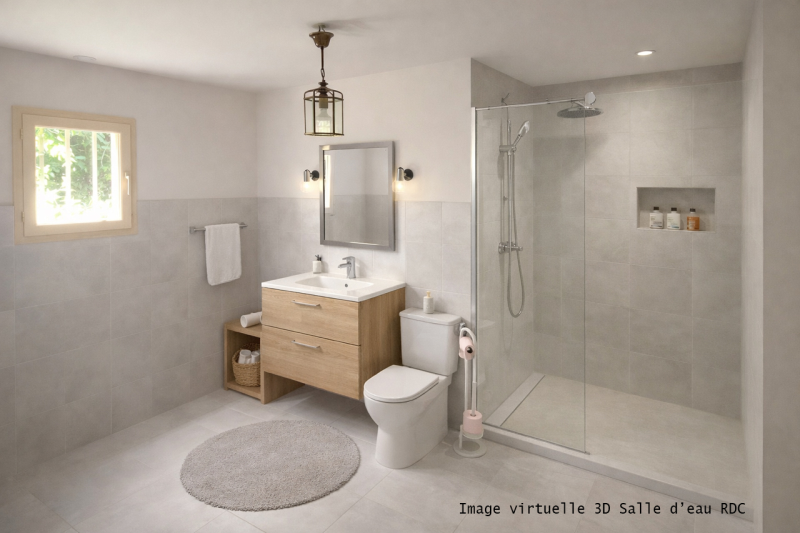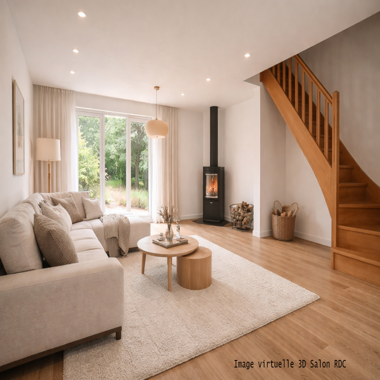 La maison se compose au rez-de-chaussée : une entrée sur salon/séjour de 44 m² avec cheminée, cuisine ouverte aménagée, une chambre avec placard, une salle de bains/wc, wc avec fenêtre.