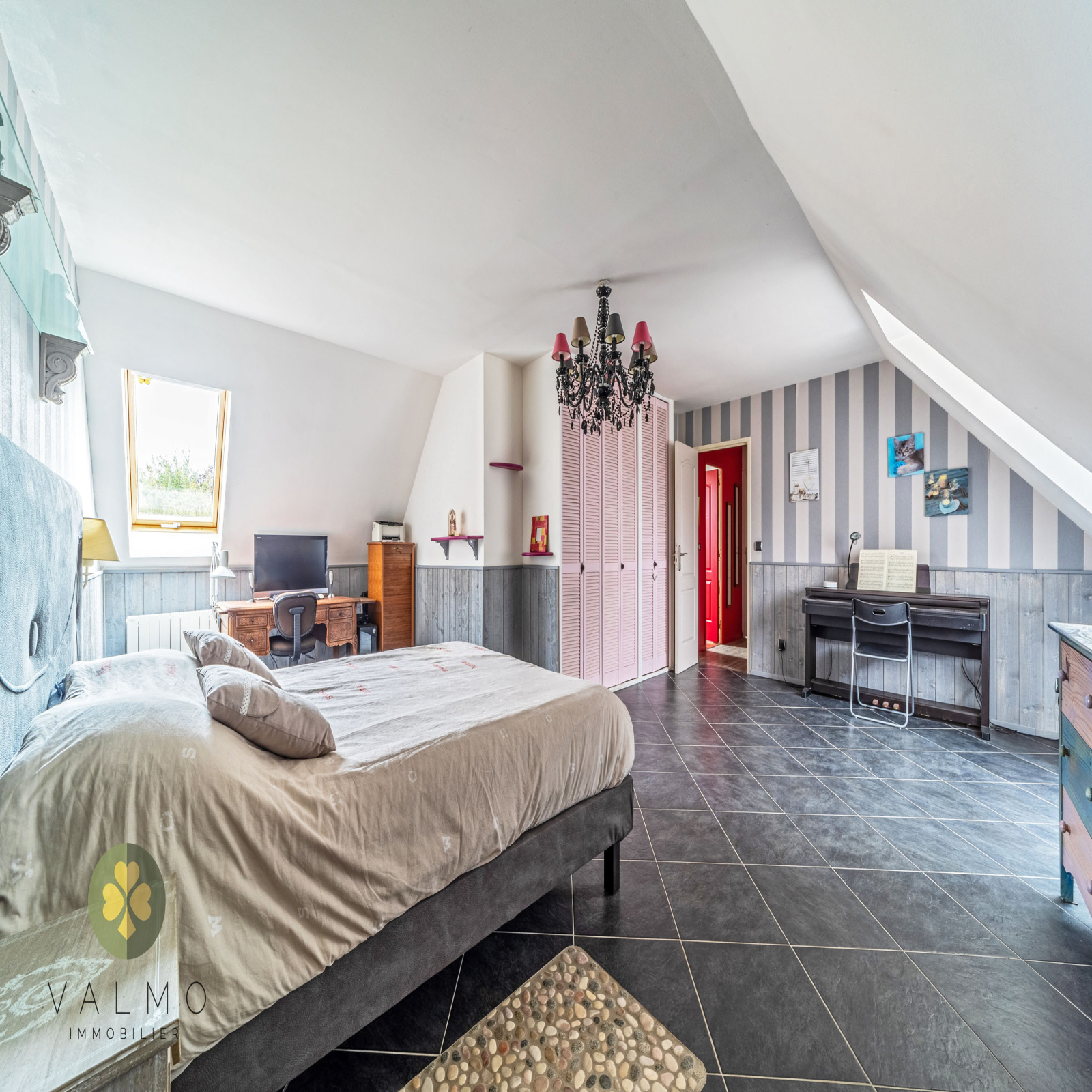 L'étage dispose de 3 chambres supplémentaires dont une de près de 27m² et deux avec placards, ainsi qu'une grande salle de bain équipée d'une baignoire, d'une douche et d'un wc. Possibilité de créer une suite parentale.