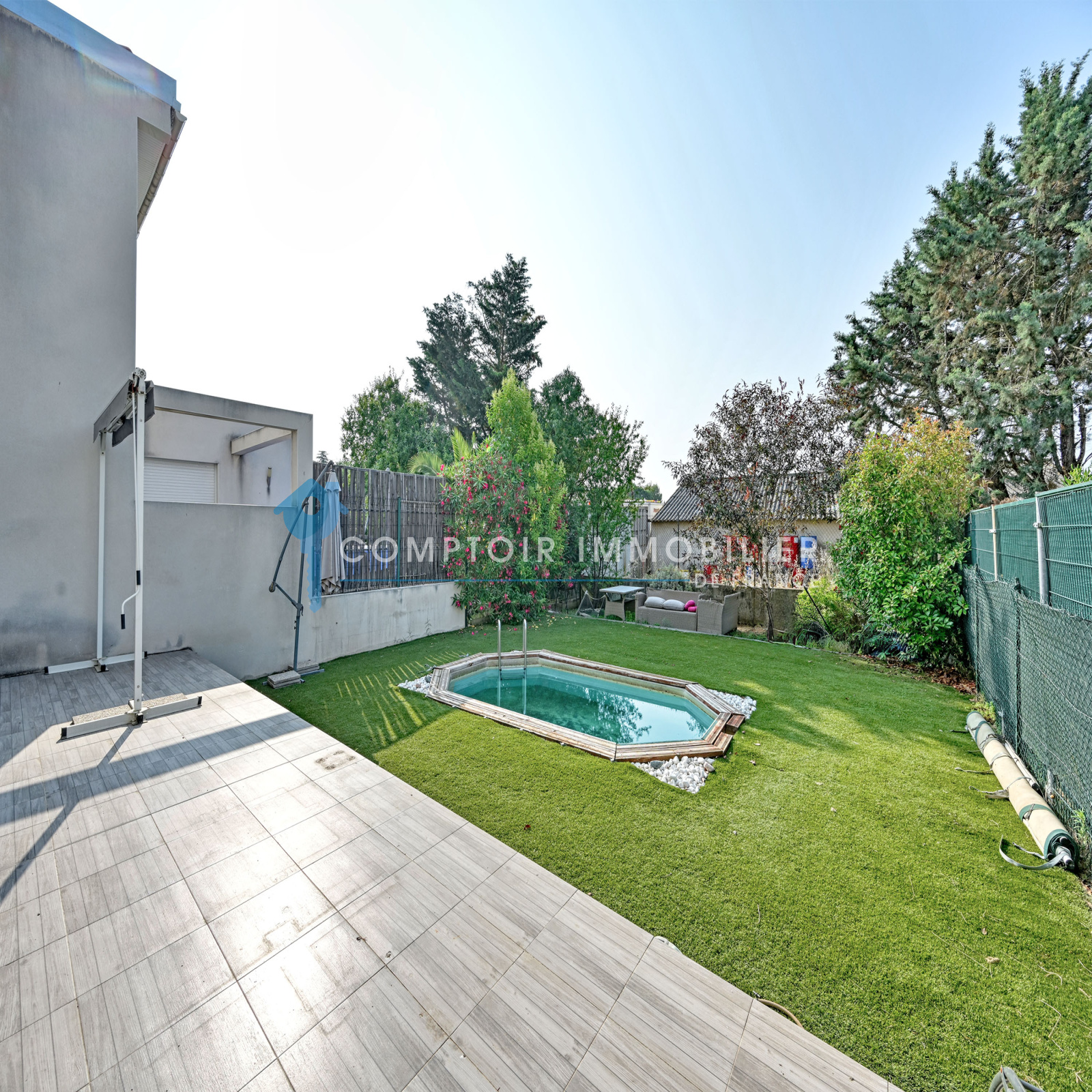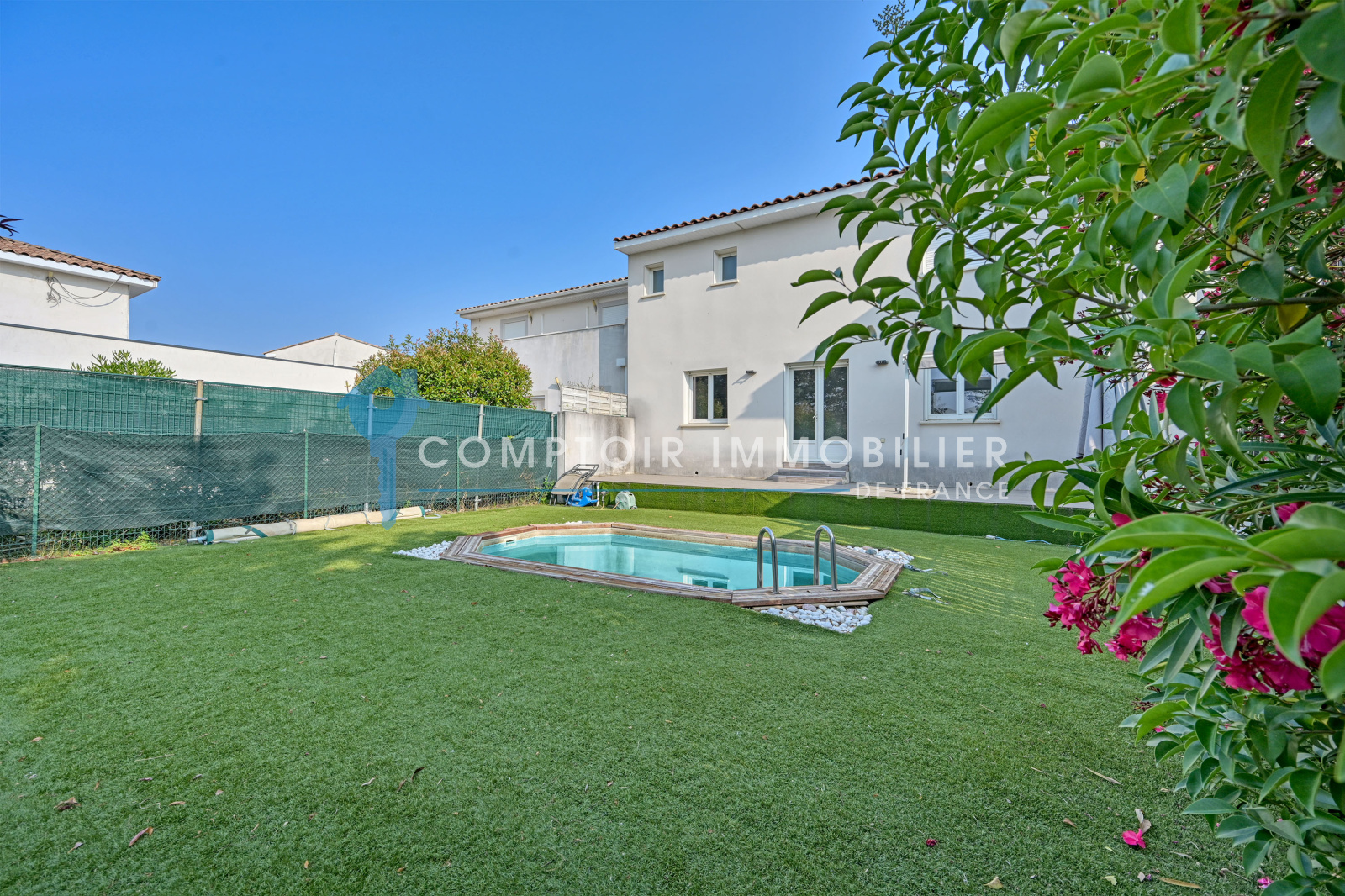 Au rez de chaussée, profitez d'un vaste séjour, d'une cuisine séparée, d'une salle d eau avec wc, d un garage et de son jardin sans vis à vis avec piscine.