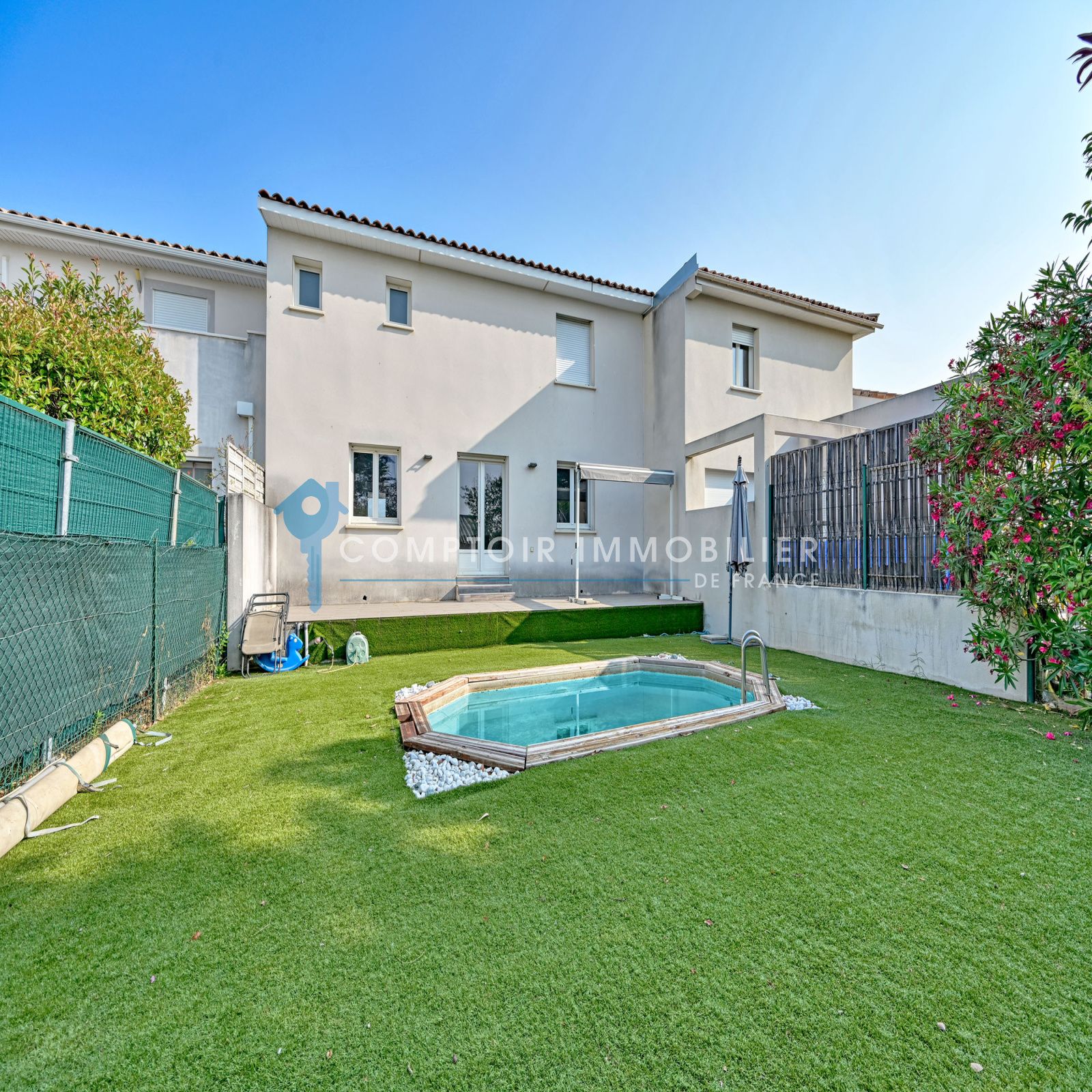 Dans un quartier très recherché et à 2 mns de l accès autoroute, venez découvrir cette villa mitoyenne en R + 1 de 2013 avec sa parcelle de près de 400m2
