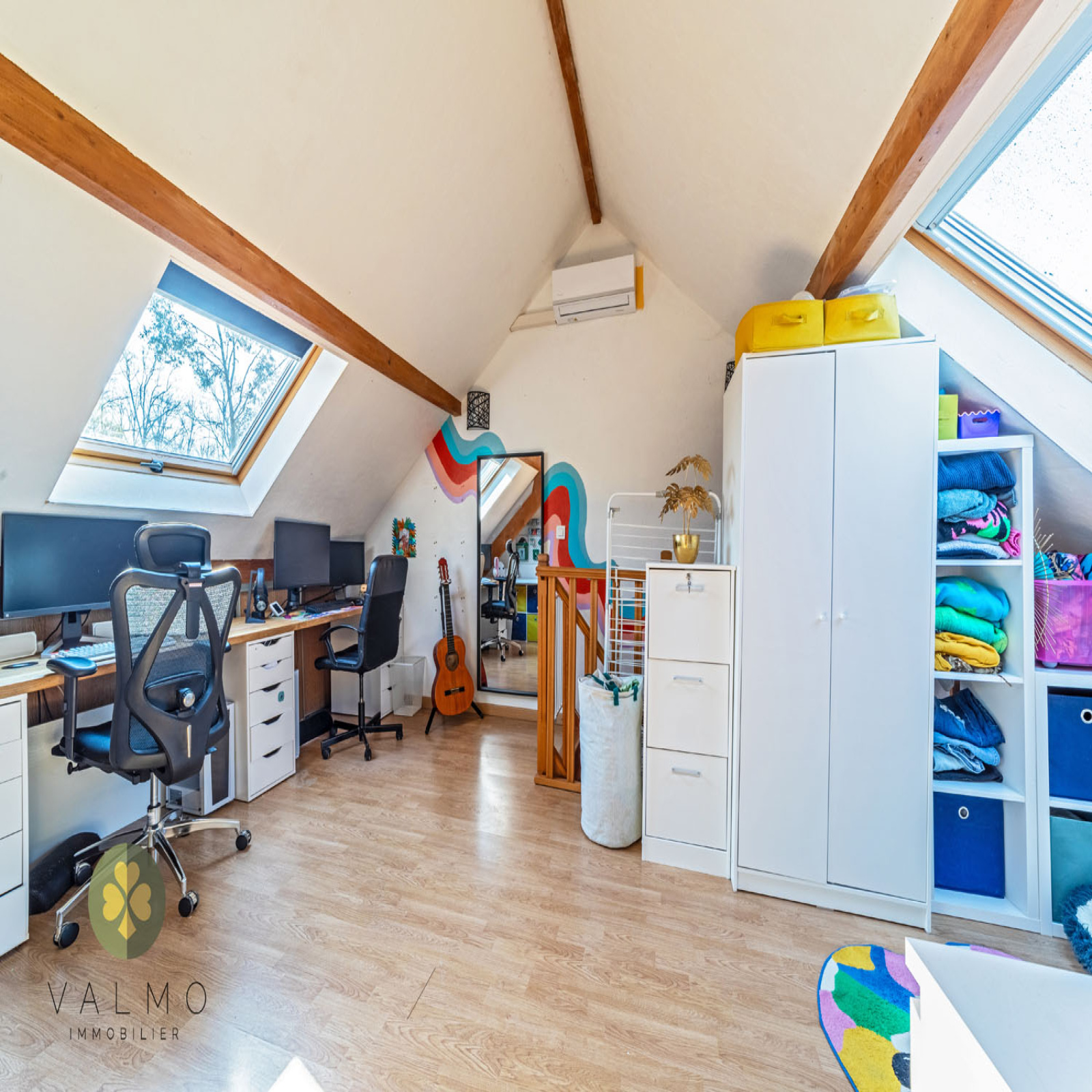 A l'étage, une pièce palière et 2 chambres.