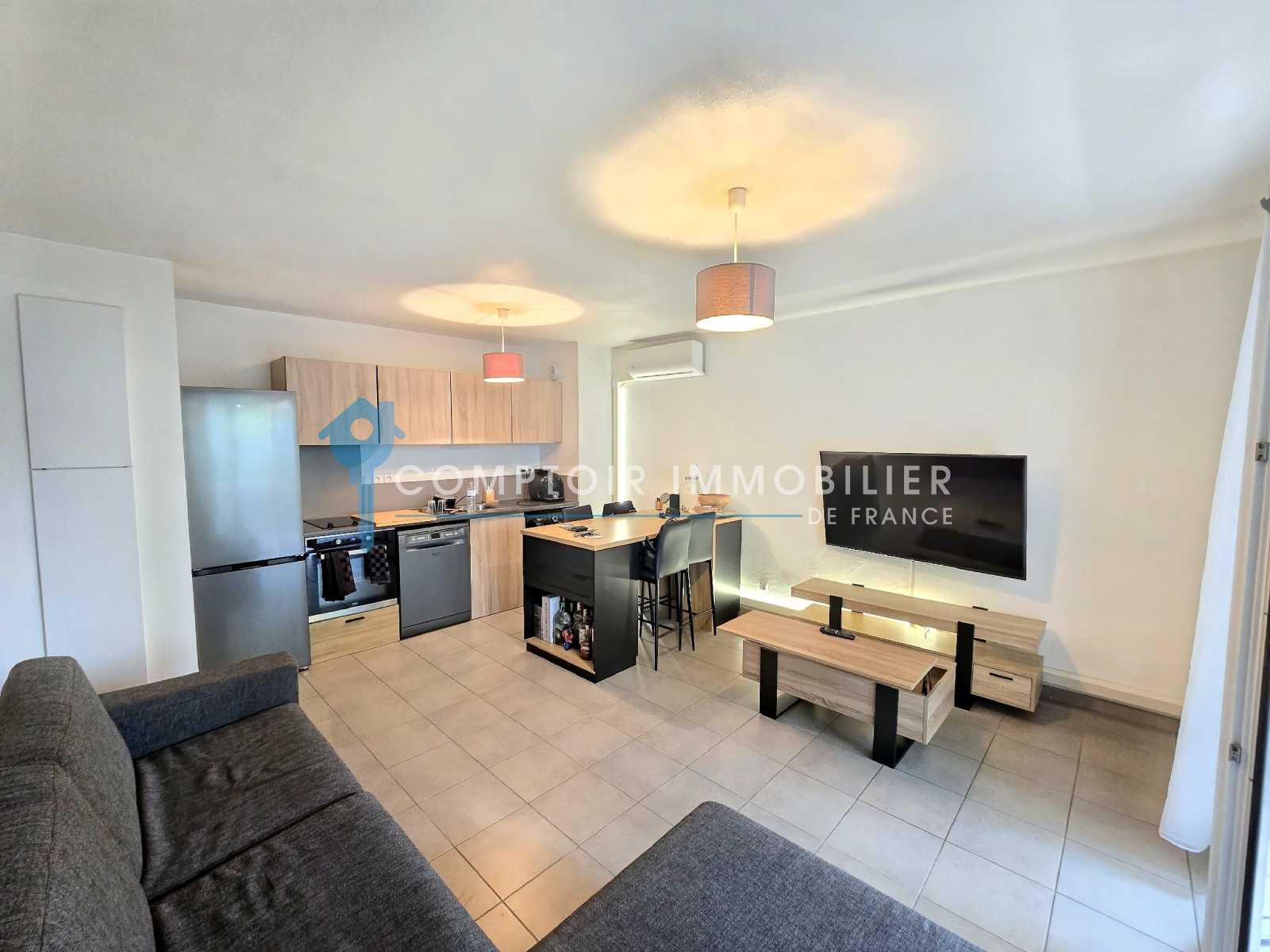 Bel appartement T2 climatisé, en rez de chaussée, composé d'un salon/séjour US ouvert sur une terrasse d'environ 12m², d'une chambre ainsi qu'une salle d'eau.