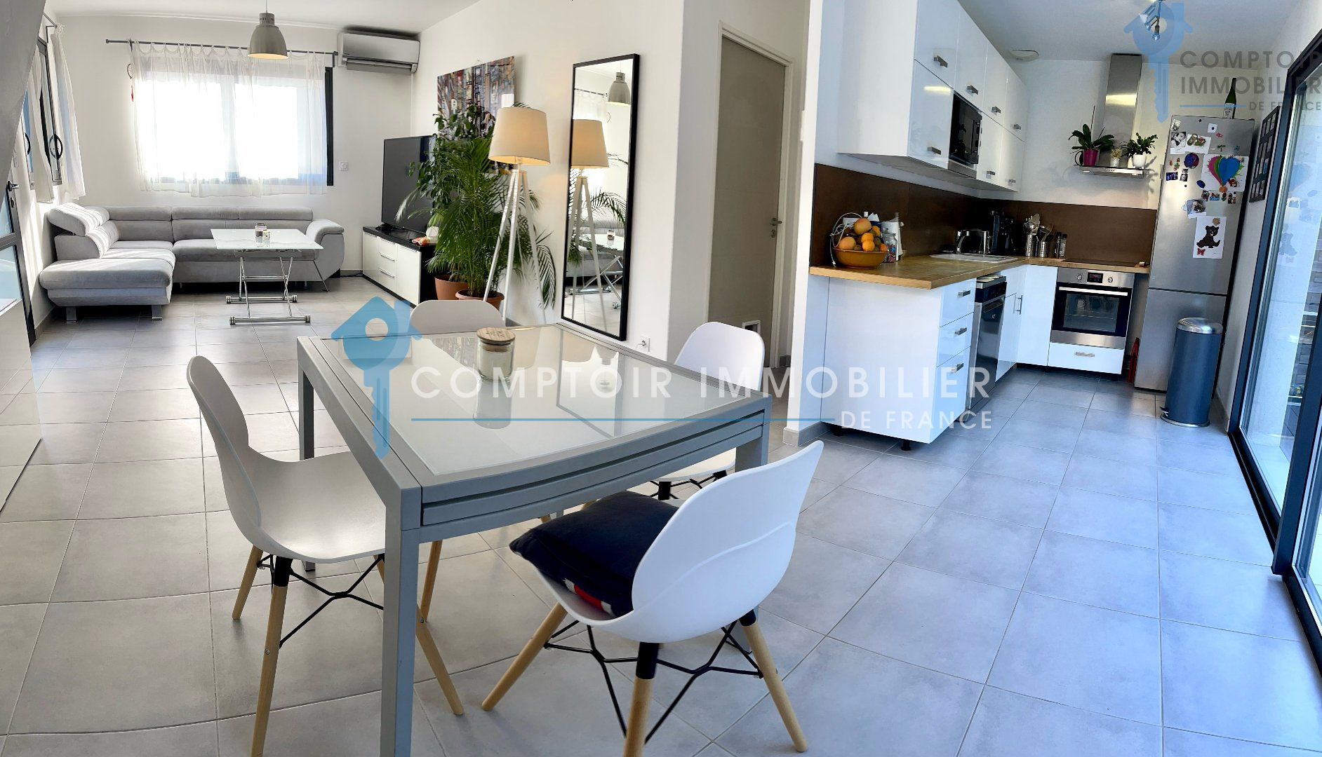 En Exclusivité, à Saint Jean de Vedas, à proximité de la clinique Saint-Jean, du tram, de l'accès autoroute. Cette maison contemporaine est située au calme, sans vis-a-vis, de construction RT2012 avec les assurances décennale. La maison bénéficie de nombreux matériaux et matériels de qualité, comme la climatisation gainable, menuiseries et volets roulants alu, cumulus thermodynamique etc...Elle est composée de 3 belles chambres, un grand garage isolé et carrelé ainsi qu'un agréable jardin pour profiter des bons moment d'été. Bien rare et de qualité. COMPTOIR IMMOBILIER DE FRANCE - Christophe BAULO - 06 50 197 197 - Plus d'informations sur www.cif-immo.com (réf. 14455) -- Informations CORONAVIRUS : Nos visites s'effectueront avec la mise en place d'un protocole sanitaire, notamment avec le port d'un masque et dans le respect des gestes barrières, afin d'assurer la protection de tous. -- Honoraires charge vendeur Honoraires charge vendeur Prix moyens des énergies indexés au 14/03/2022 (abonnement compris). Montant estimé des dépenses annuelles d'énergie pour un usage standard : entre 315 € et 427 € par an.