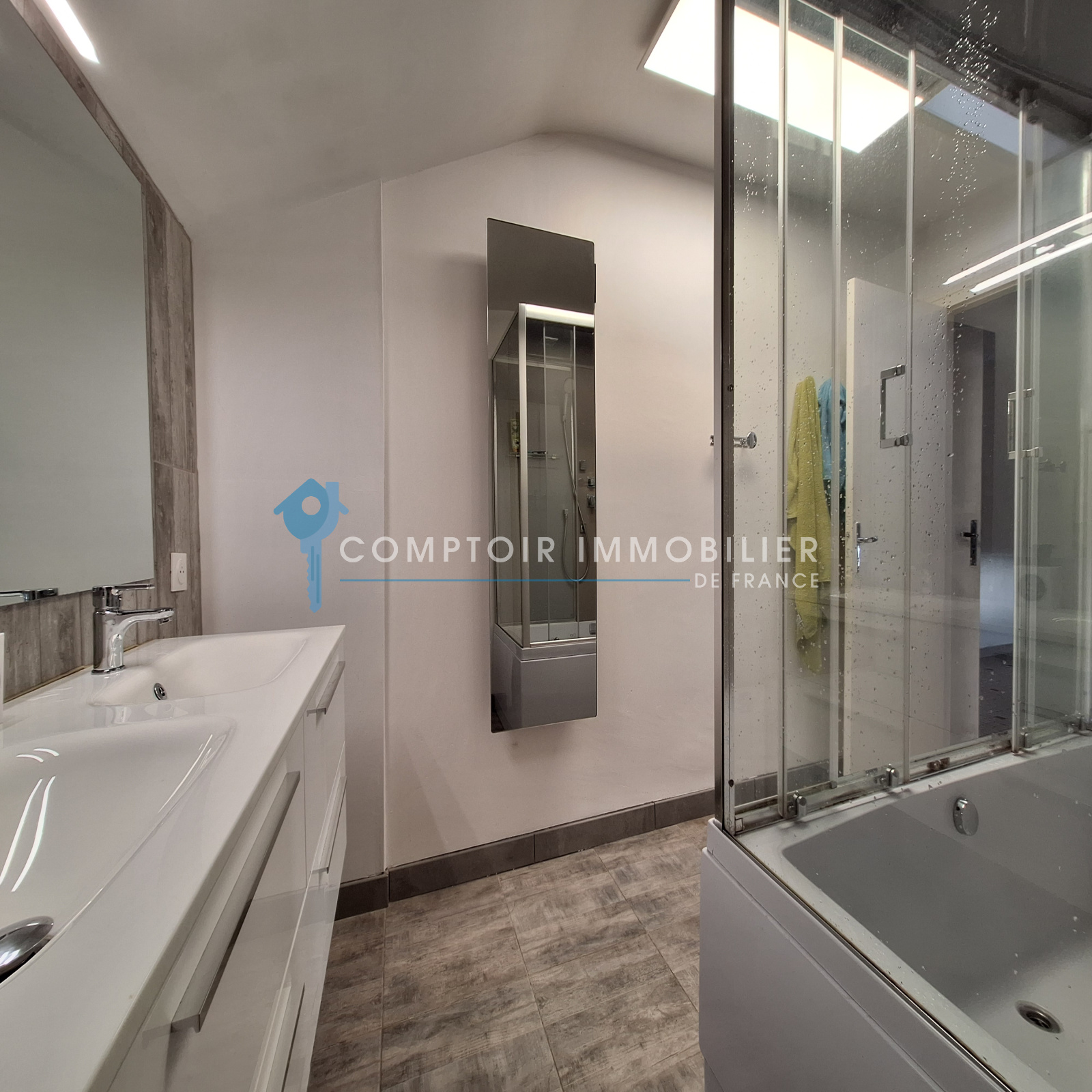 A proximité immédiate des commodités du village, cette grande maison rénovée avec goût (plus de 200m² habitables) se compose :