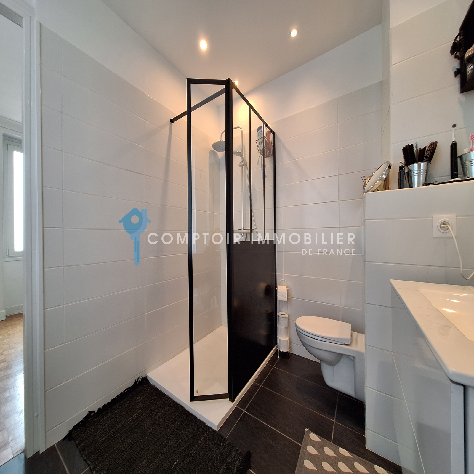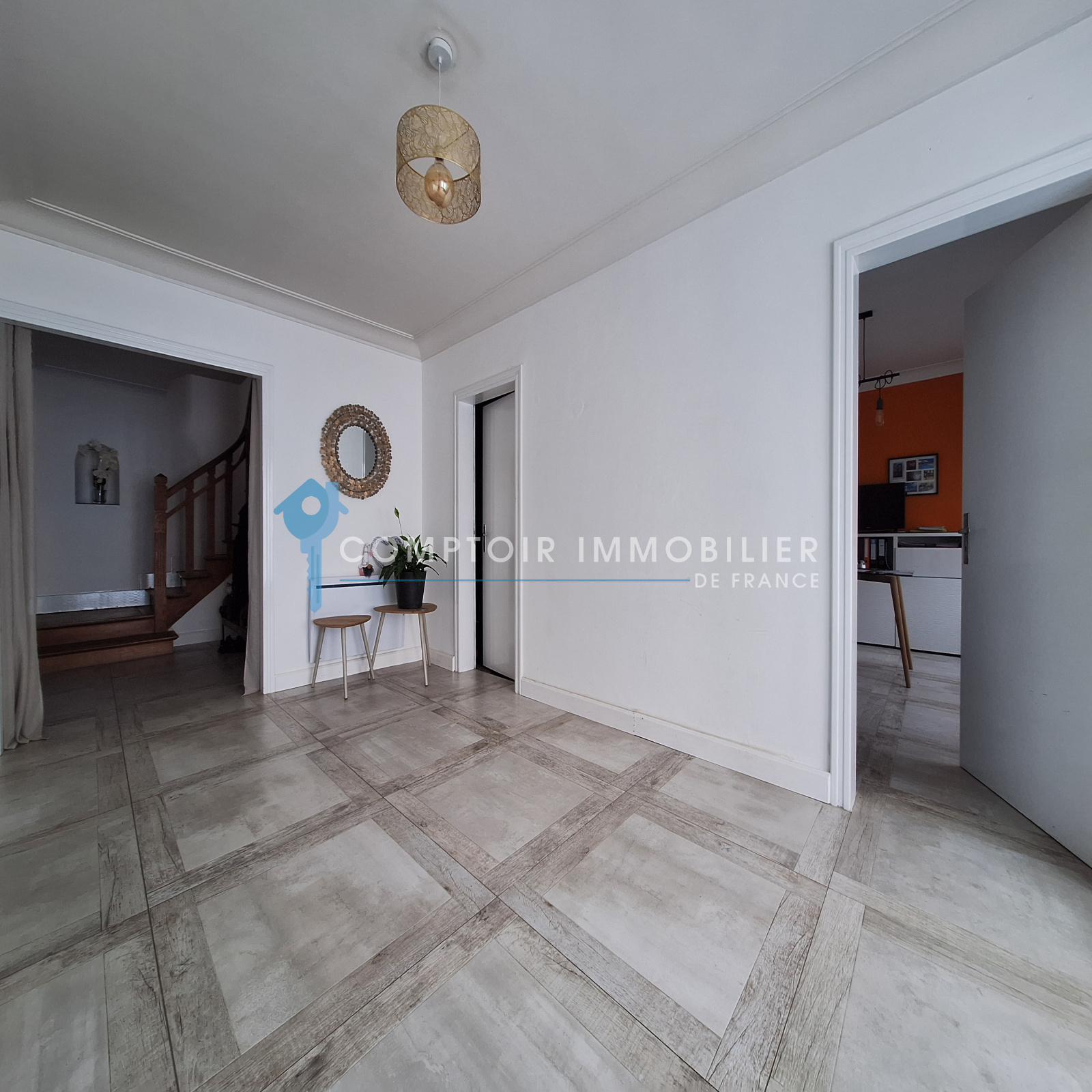 Au RdC : d'un garage avec portail motorisé, d'un espace atelier, d'un vaste hall d'entrée ouvrant sur un bureau et une buanderie. Ce niveau pourrait tout à fait convenir à une activité professionnelle.