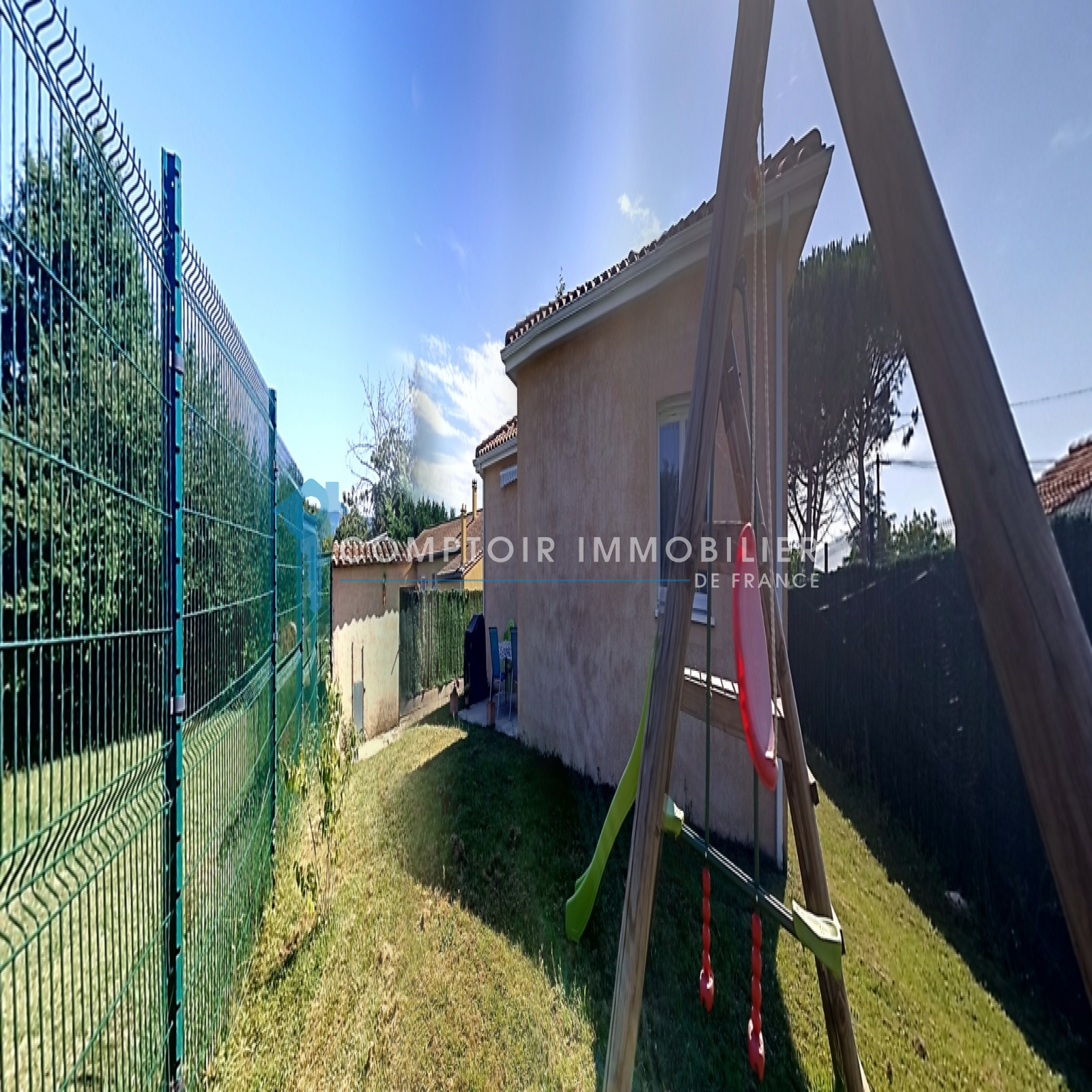 Son jardin de 759m² entourant la maison est entiérement cloturé avec portail électrique.