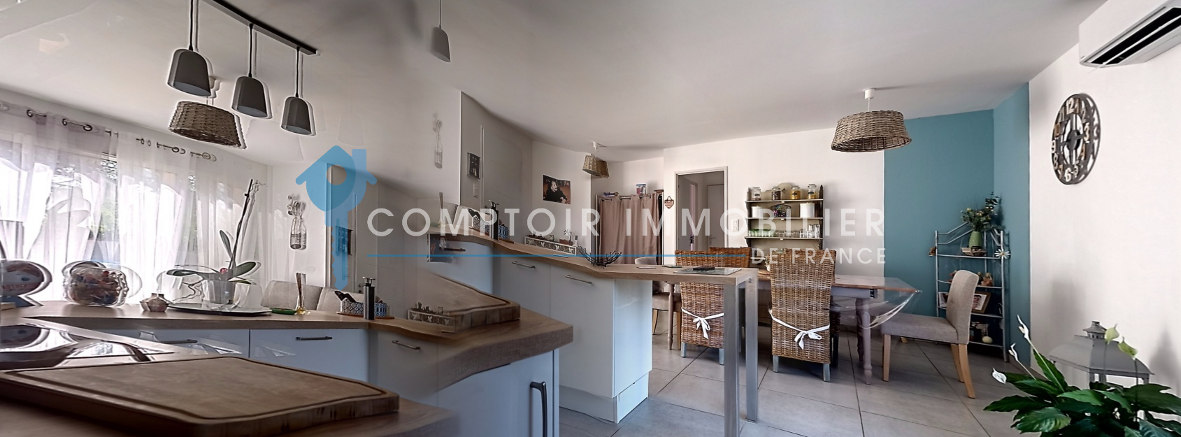 D'une lumineuse pièce de vie avec cuisine ouverte donnant sur une terrasse, d'un coin nuit avec 3 chambres et salle de bain avec baignoire et douche à l'italienne.