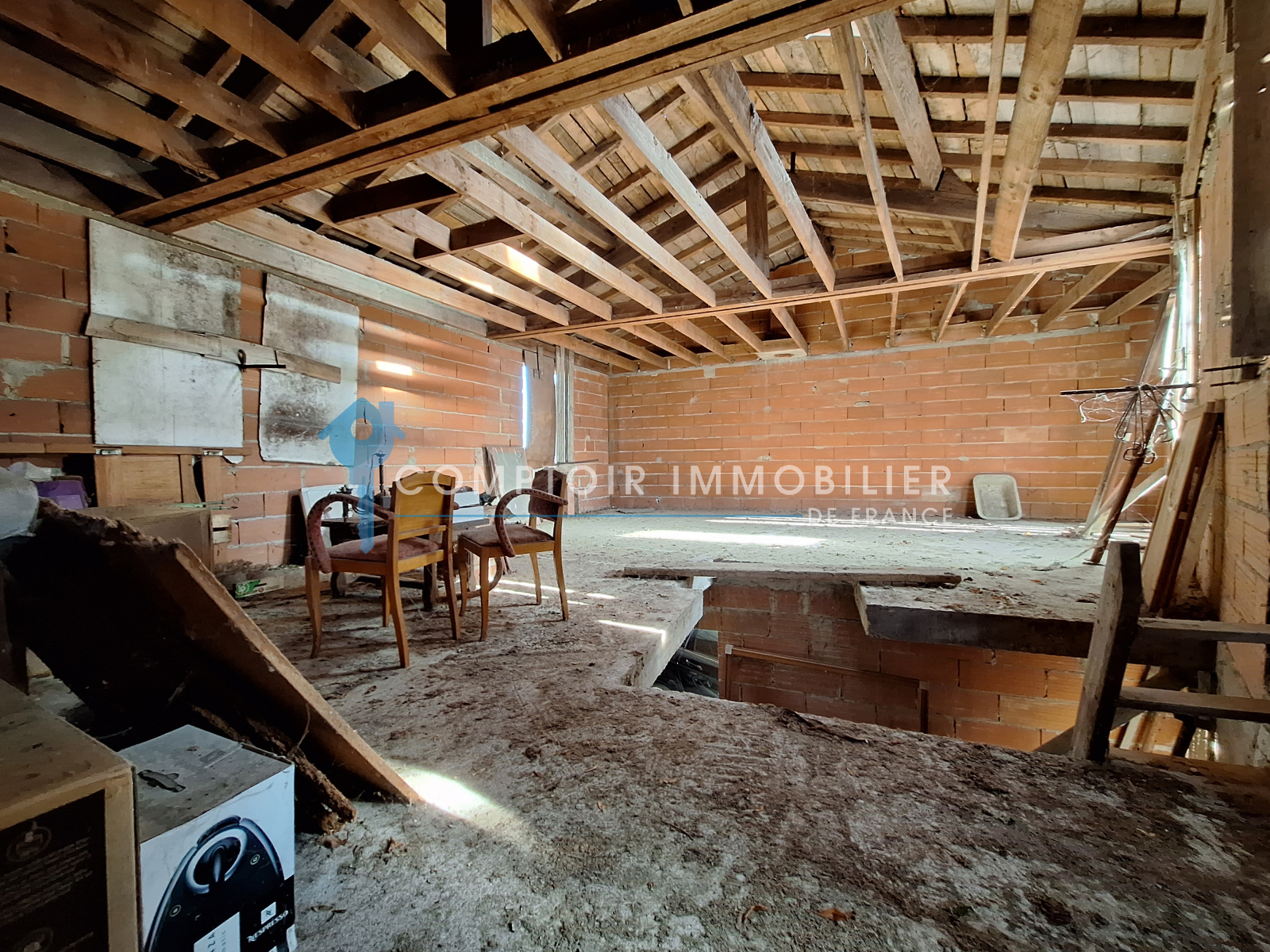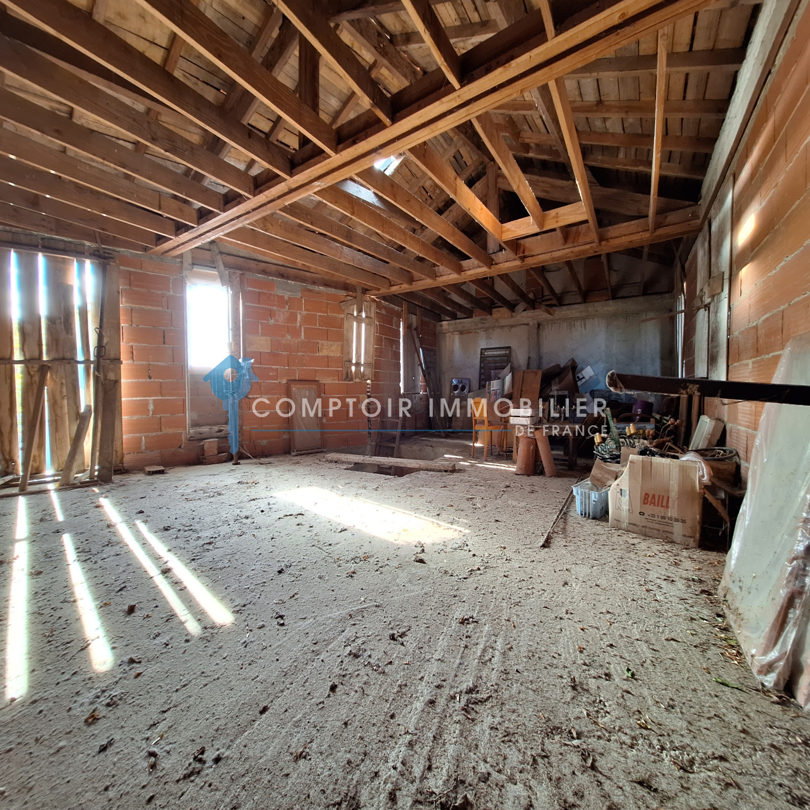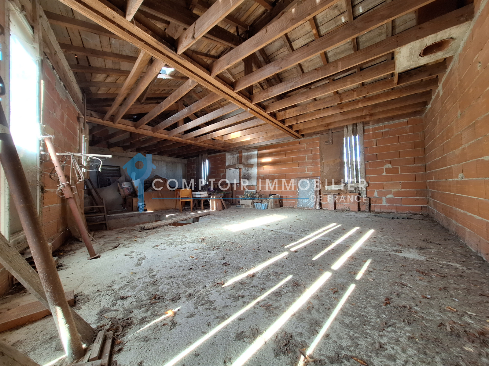 Elle se compose actuellement de 2 grands garages (17 et 25m²) dont 1 rejoignant l'entrée de la maison, et de 85 m² à aménager à votre guise sur 2 niveaux (23 au RdC et 62 à l'étage)