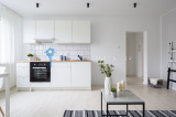 Description: Grand appartement T2 de plus de 50m2 avec 11m2 d'exterieur. Belle piece a vivre de 30m2, une chambre de 13m2, une salle de bains et WC séparés. Exposition Nord Ouest. En RDC avec vue sur le parc de la résidence.