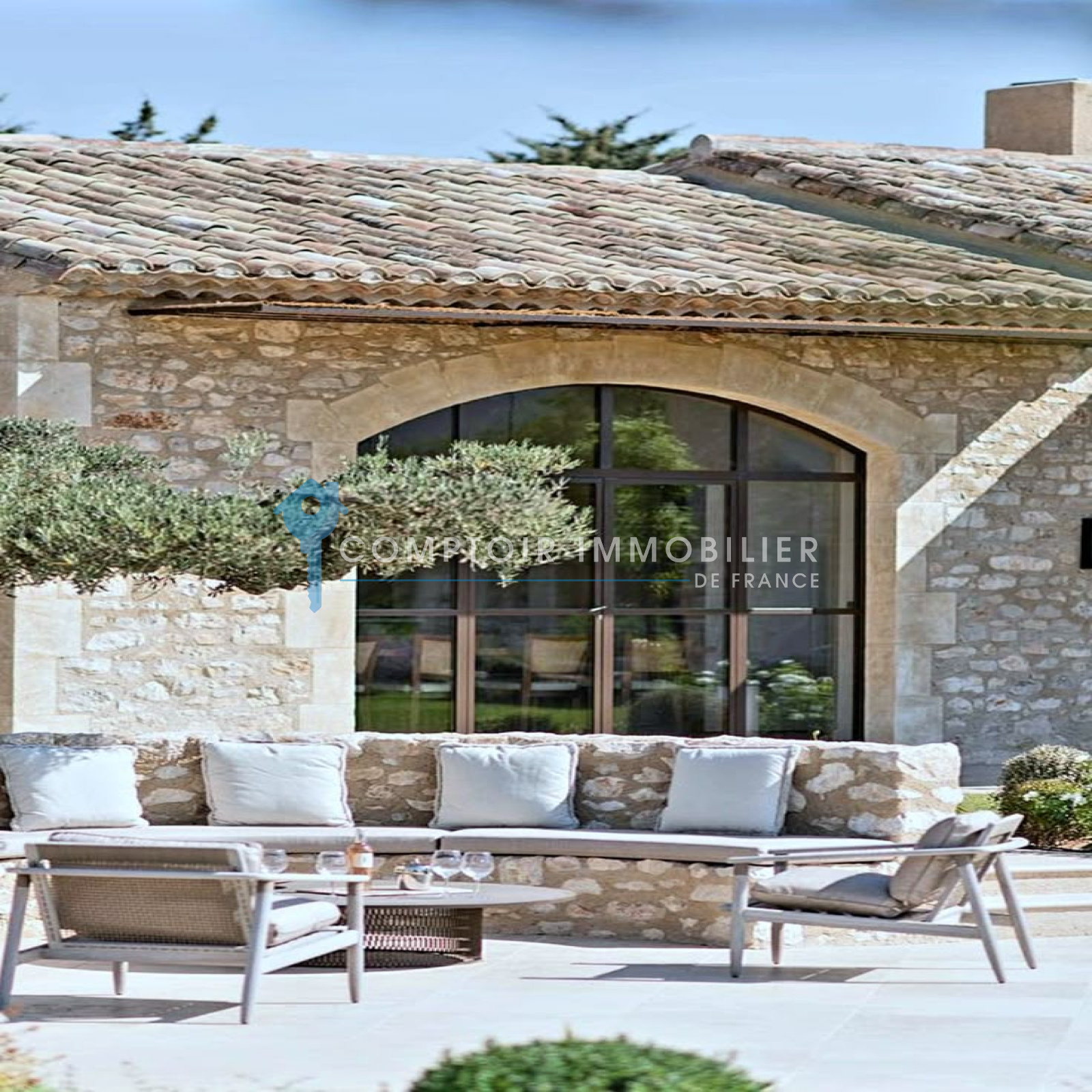 Découvrez ce mas , niché sur un grand terrain planté d'oliviers et d'essences méditerranéennes. Ce bien d'exception allie charme authentique et modernité , sa cuisine ouverte, son salon avec cheminée