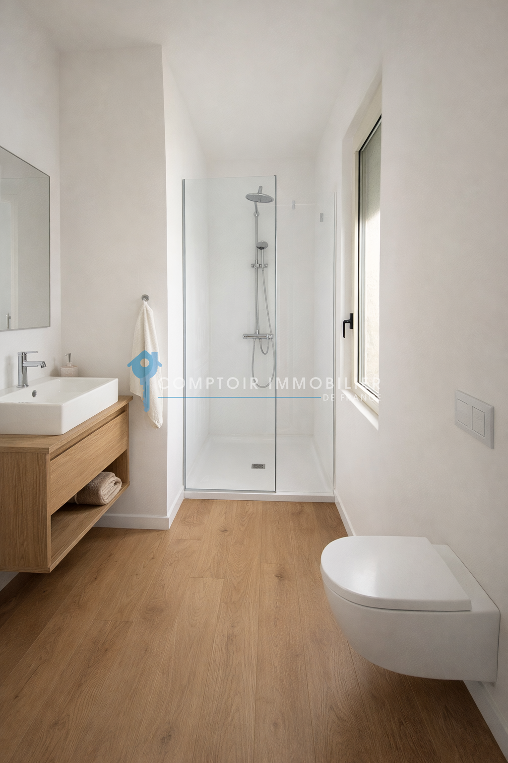Vous serez immédiatement séduits par sa luminosité, sa belle hauteur sous plafond et ses vues dégagées sur les toits de Pérols et jusqu’aux plages.